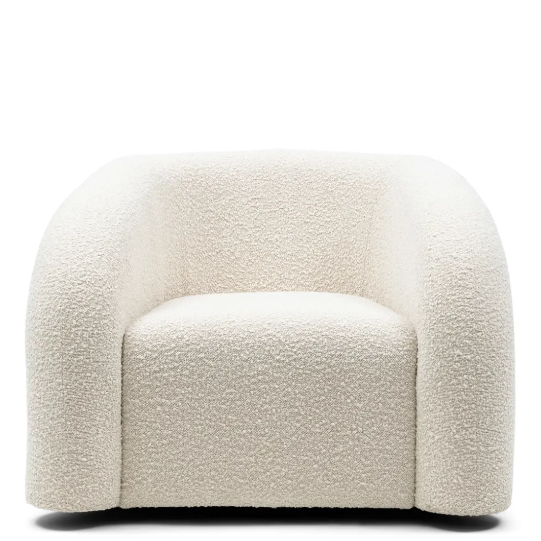 - Comfortabel, uniek en absoluut prachtig – deze fauteuil is een echte eyecatcher. De stoel biedt uitstekend zitcomfort dankzij het fijne zitvlak en de comfortabele armleuningen. De draaifunctie voegt extra functionaliteit en gemak toe aan de charme van deze fauteuil. De organische vormgeving, met elegante banen, en de luxe bouclé stof maken het tot een verfijnd meubelstuk dat een stijlvolle touch aan elk interieur geeft.