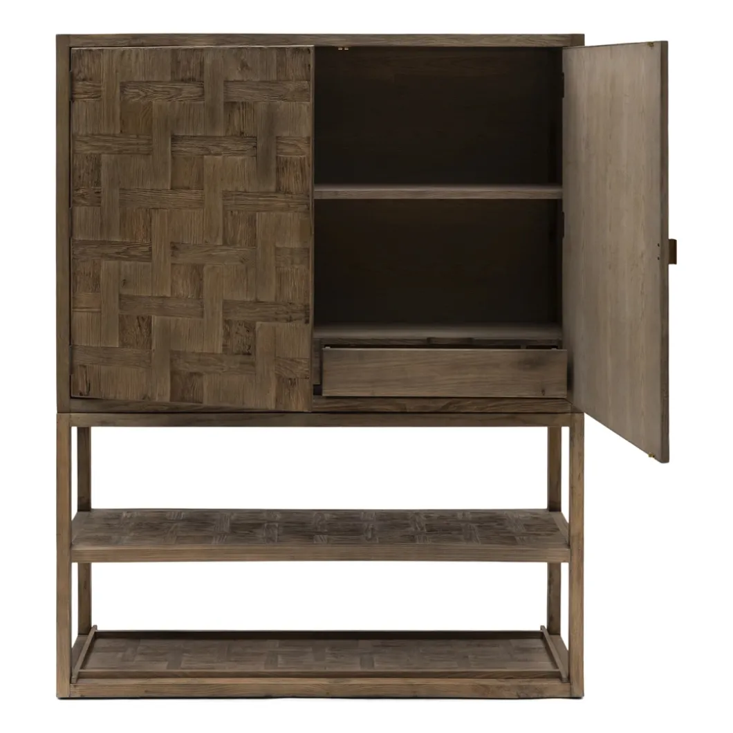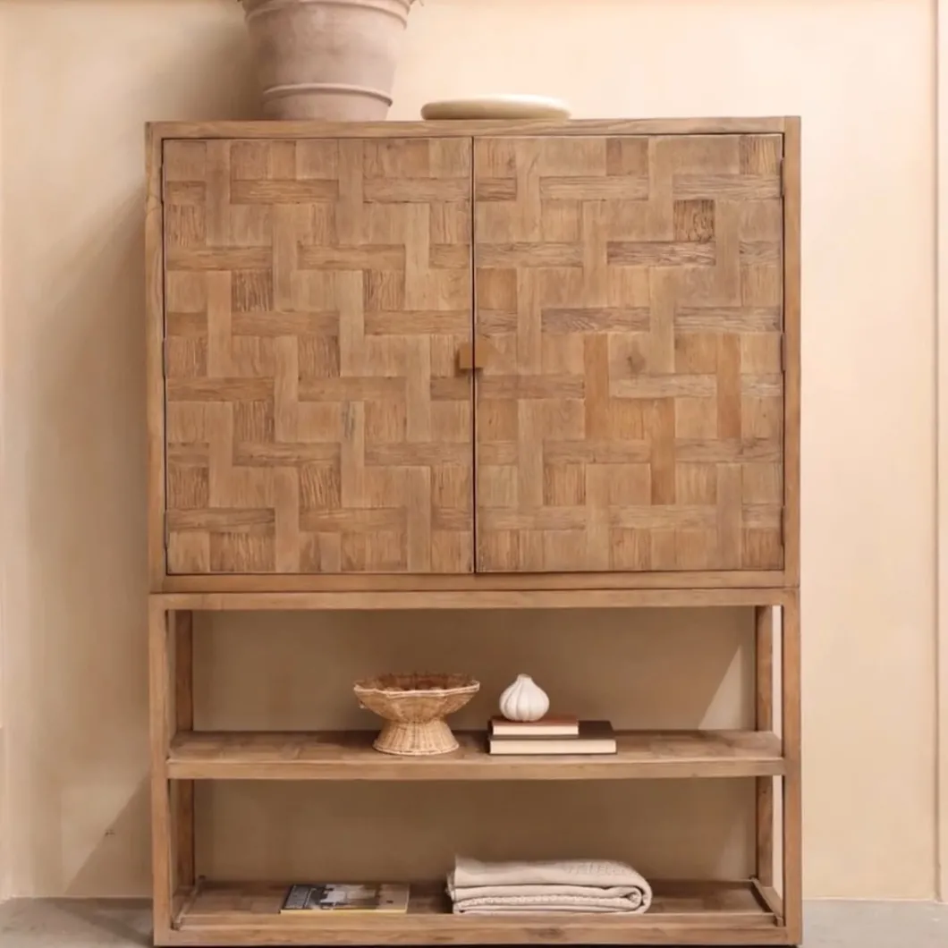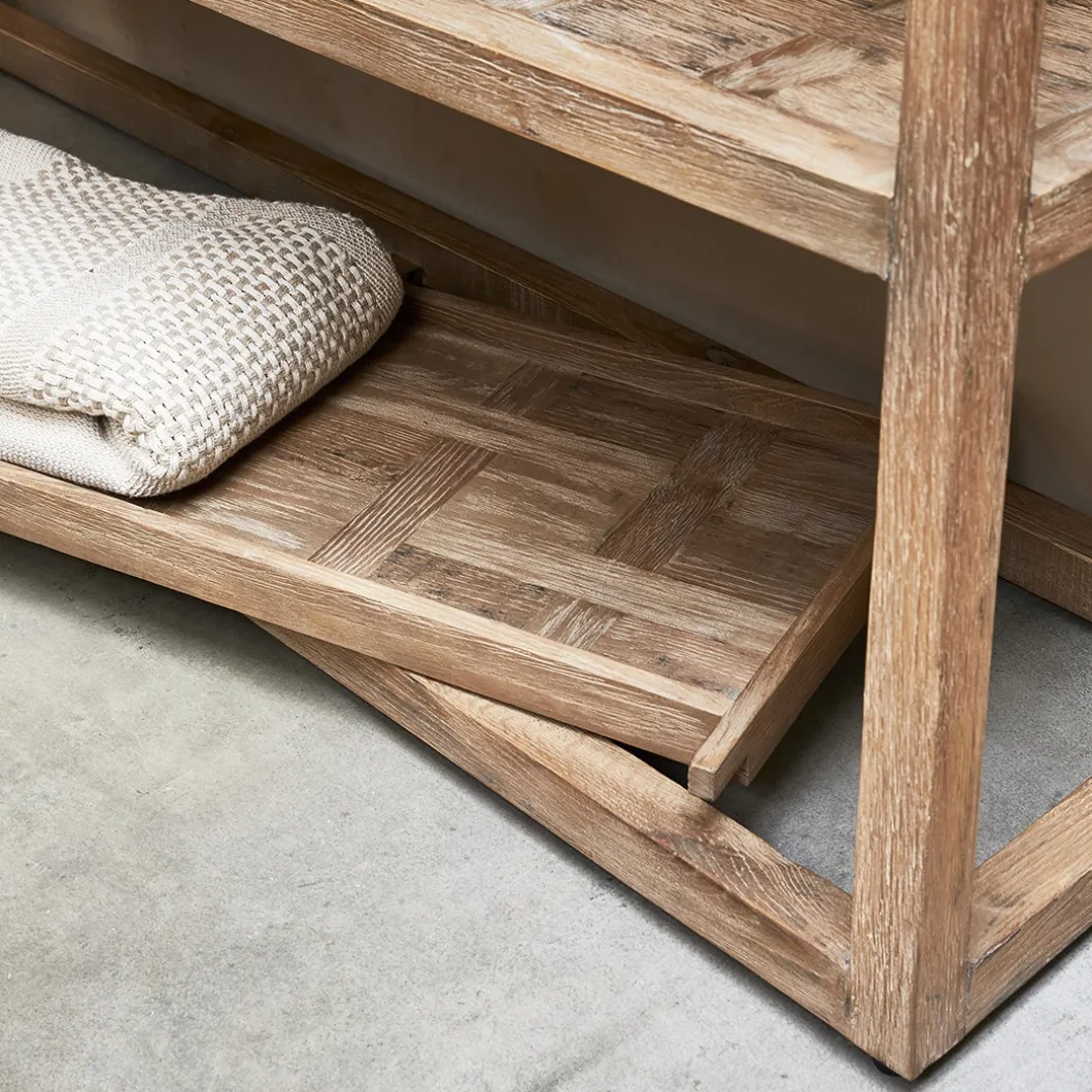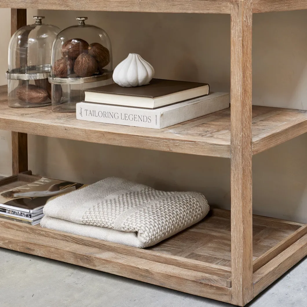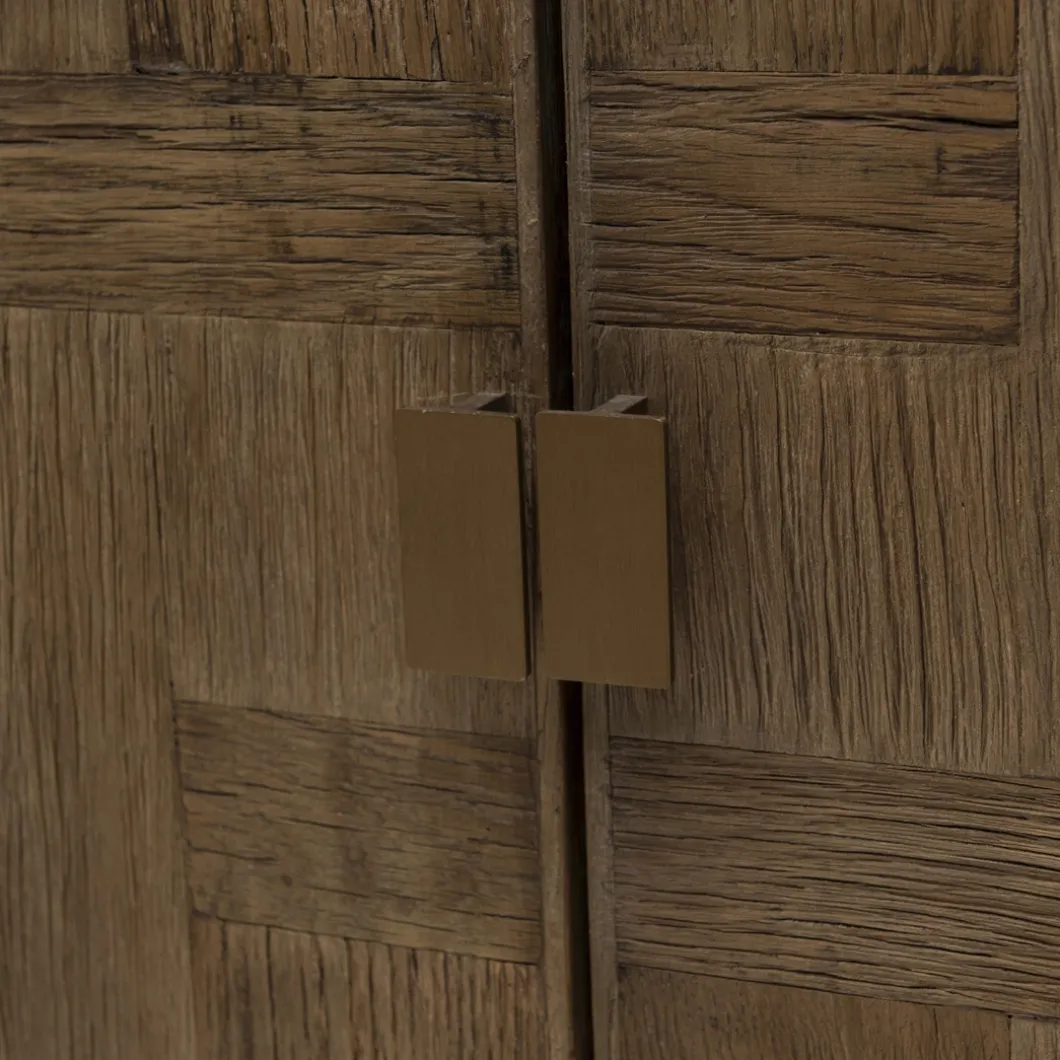 Ontdek de betovering van de Dressoir Fraser Island. Dit unieke kastje straalt karakter uit dankzij het hoogwaardige teruggewonnen eikenhout, met een unieke uitstraling door de natuurlijke houtnerven. Naast het opbergen van je spullen, voegt dit kastje warmte en karakter toe aan elk interieur. Met voldoende opbergruimte is het een praktische en duurzame toevoeging aan je huis, woonkamer of kantoor. Een bijkomend kenmerk dat deze kast onderscheidt, is de mogelijkheid om de onderste plank te verwijderen en te gebruiken als een functioneel dienblad.