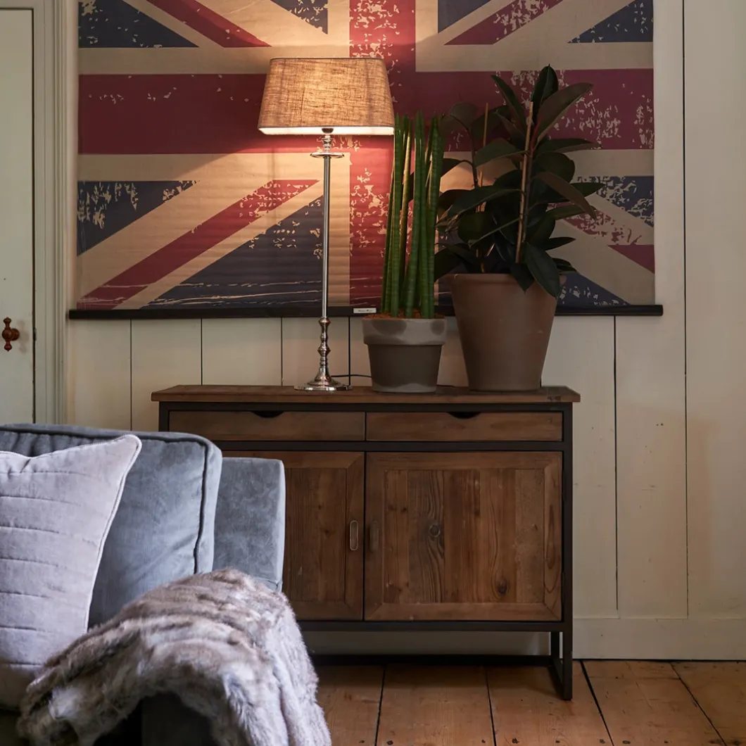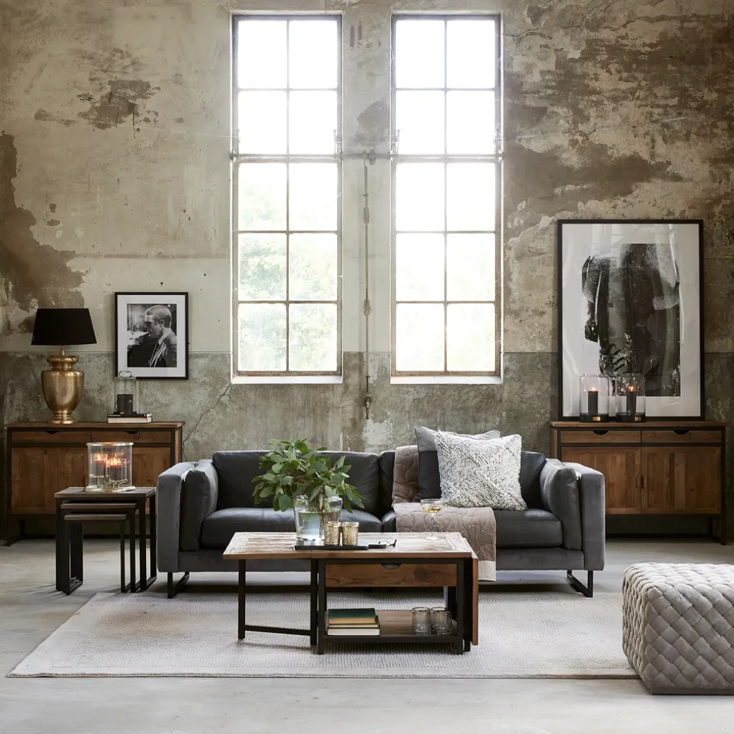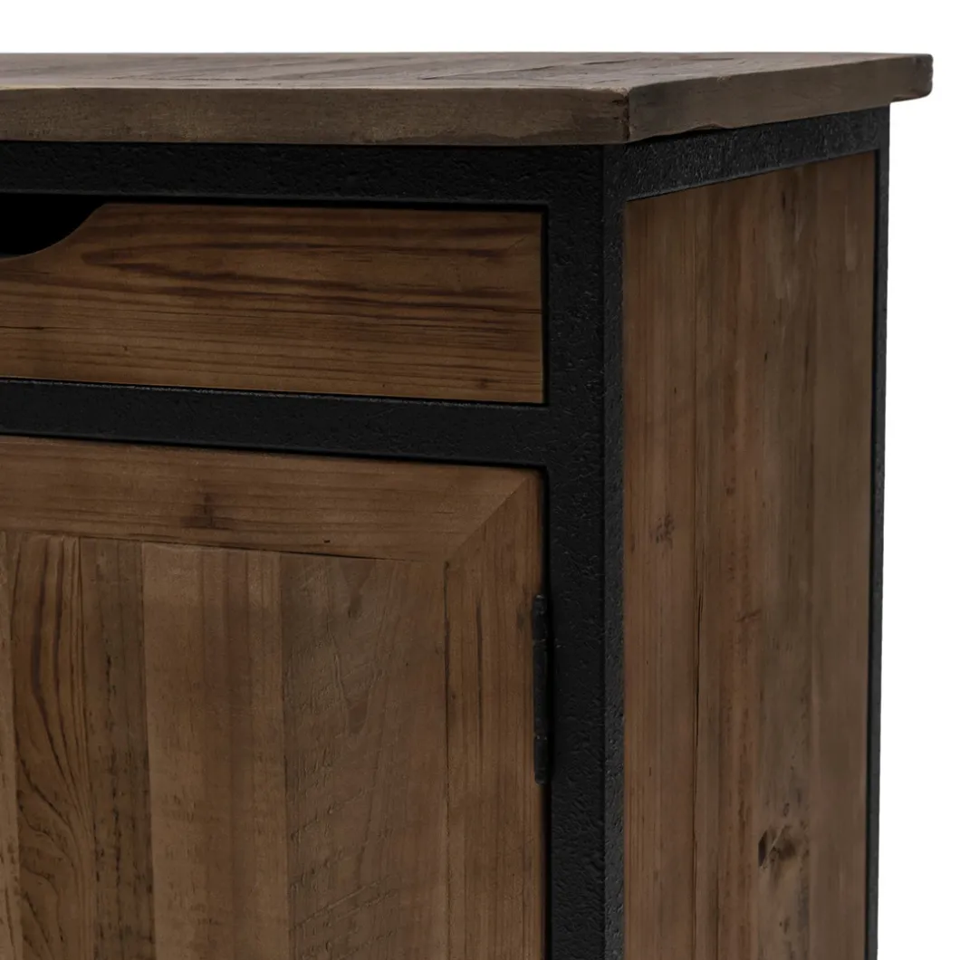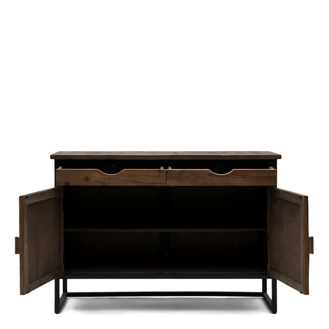 Een robuust dressoir met industrieel karakter vormt een mooie toevoeging aan de Shelter Island serie. Het gebruik van gerecycled iepenhout en sparrenhout maken van elk meubel een uniek exemplaar. De twee schuiflades en twee kastjes bieden genoeg ruimte voor diverse accessoires.