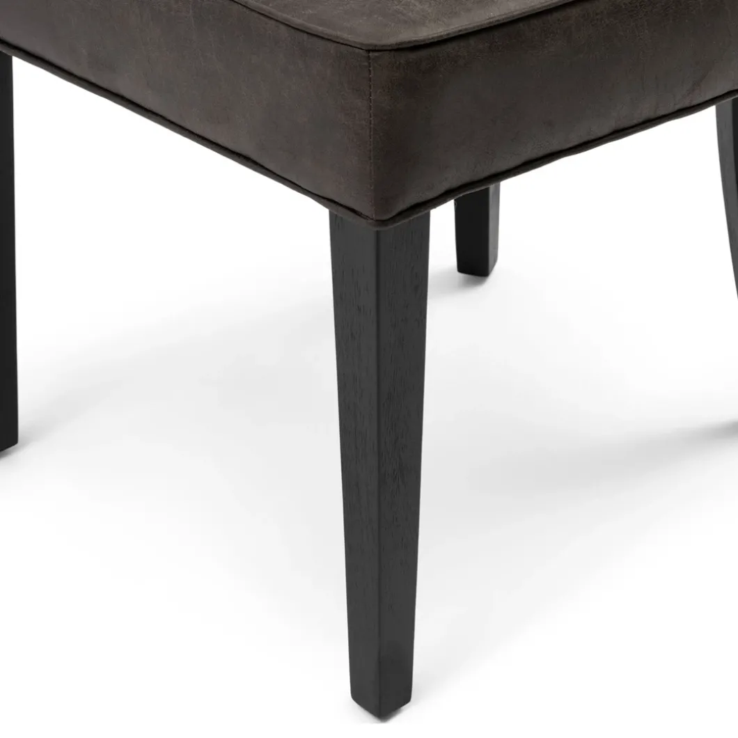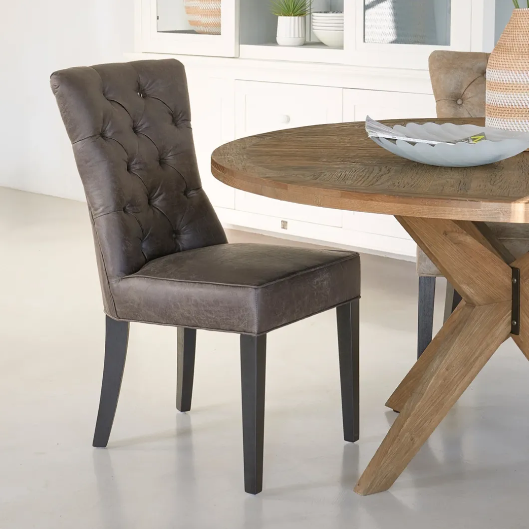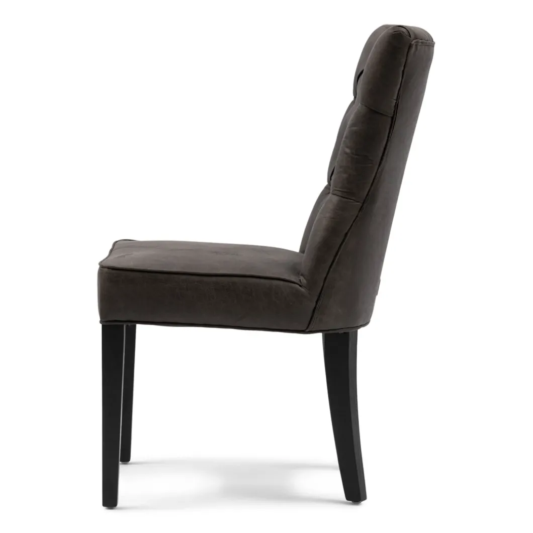 Een klassieke eetkamerstoel in een modern jasje. Rechte zitting, rechte stoelleuning en geen armsteunen. Een mooie gecapitonneerde stoel, die hem een luxe uitstraling geeft. In een pellini stof en op rubberhouten poten, afkomstig van oude rubberbomen en daardoor een duurzaam product.