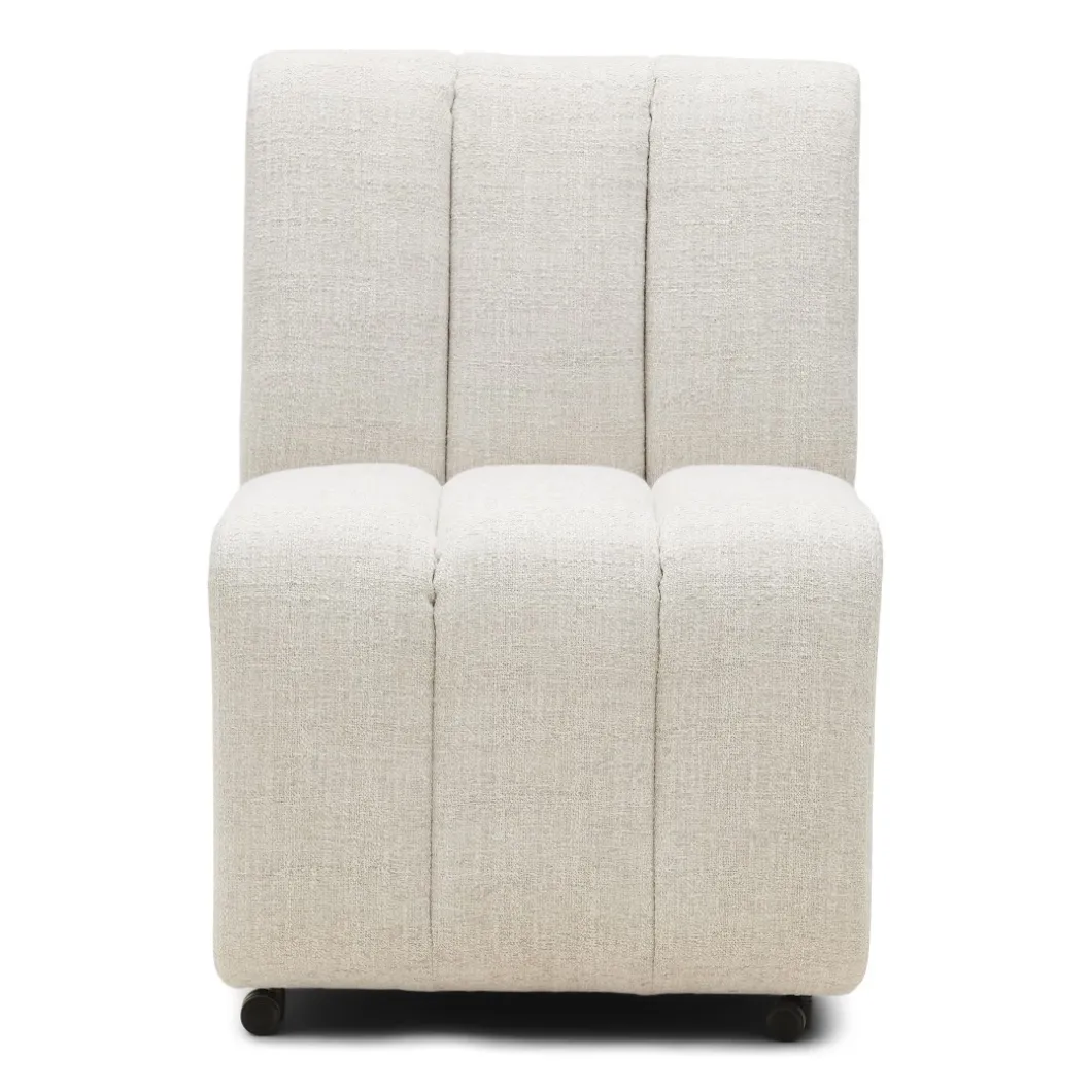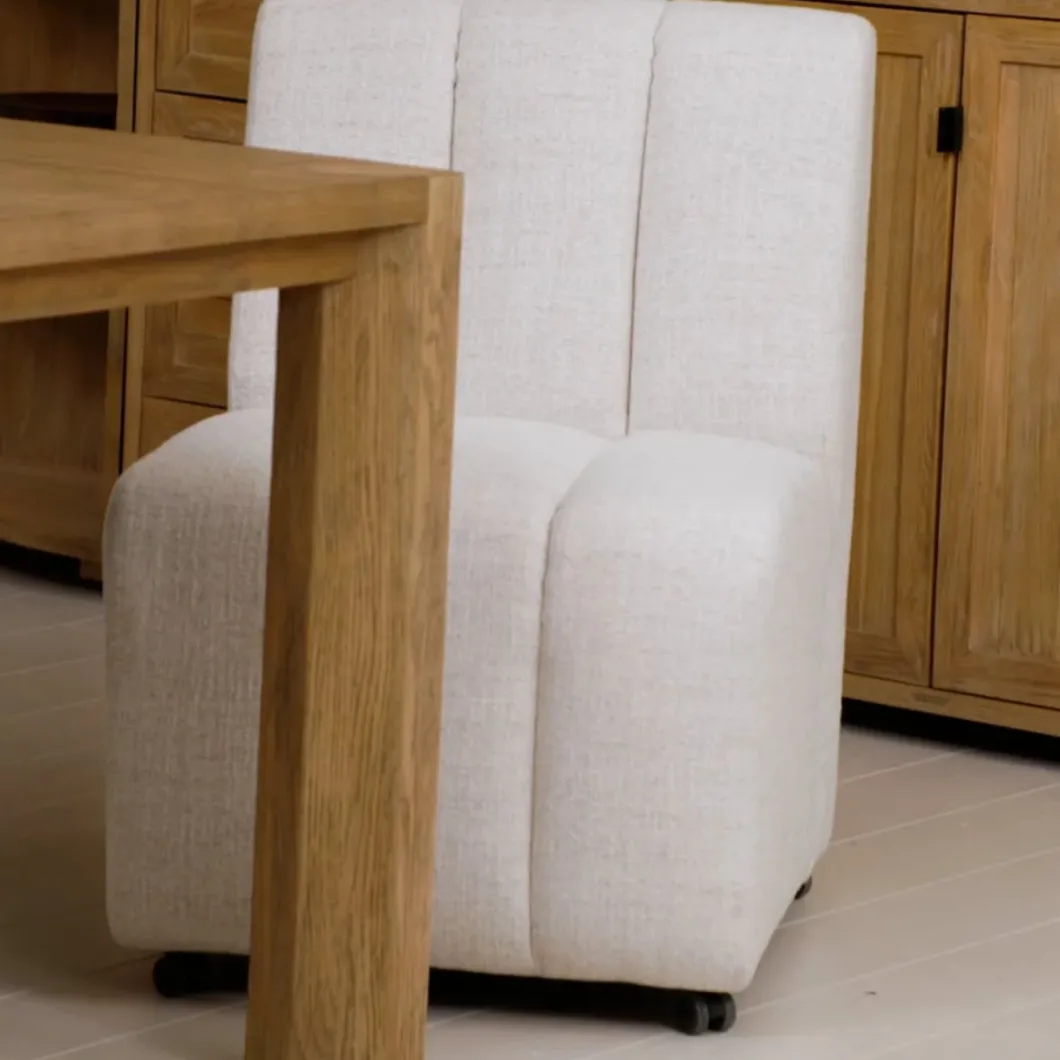 Ontdek de Dazzle Eetkamerstoel verkrijgbaar in meerdere kleuren. Met handige wieltjes aan de onderkant en prachtig vormgegeven banen in het textiel voegt deze stoel niet alleen een vleugje elegantie toe aan je eetkamer, maar biedt hij ook moeiteloze mobiliteit en comfort. Een perfecte aanvulling voor een stijlvolle zitervaring.