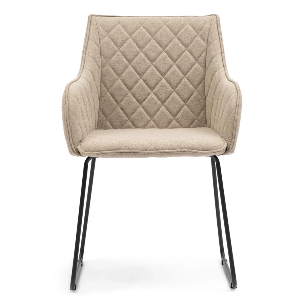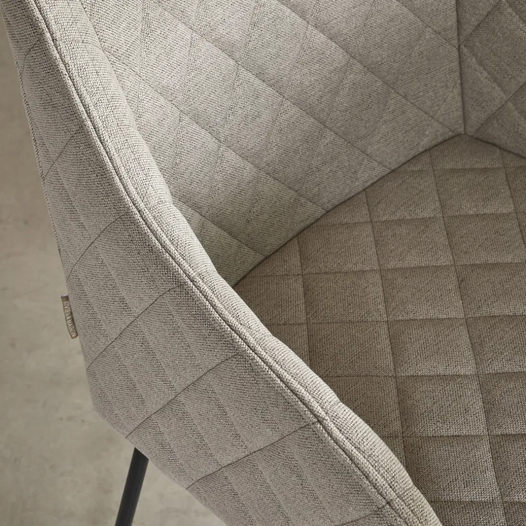 De Frisco Drive eetkamerstoel in kleur Light Flax, Belgium Weave stof is een kameleon. De stoffering in een gemeleerde linen-look stof, maakt deze stoel stijlvol en tijdloos. Het stoere ijzeren frame met sleepoot geeft de stoel een moderne look. Met afmetingen van 44x55x83 cm is deze stoel perfect voor aan elke eetkamertafel. Door de mix aan stijlen past deze Frisco Drive bij elke woonstijl.