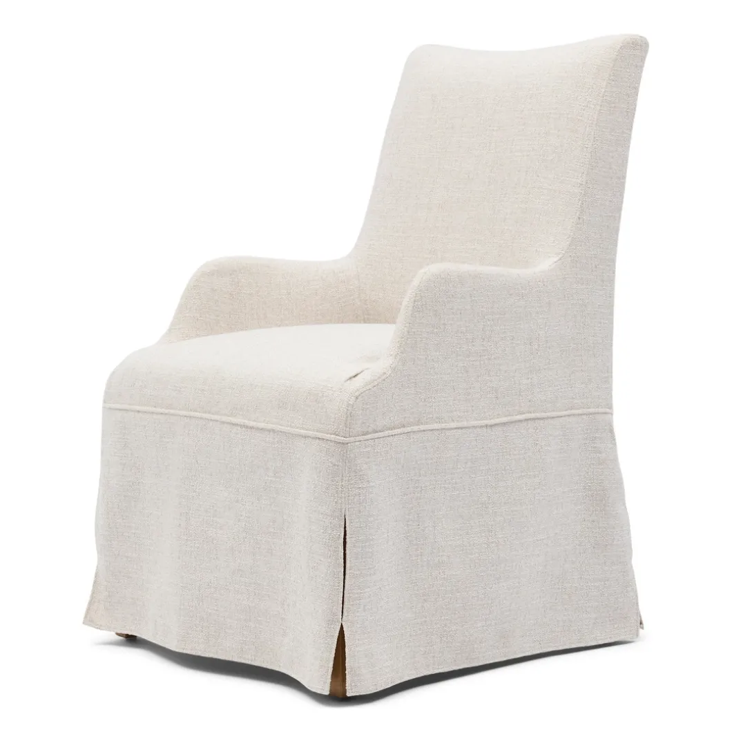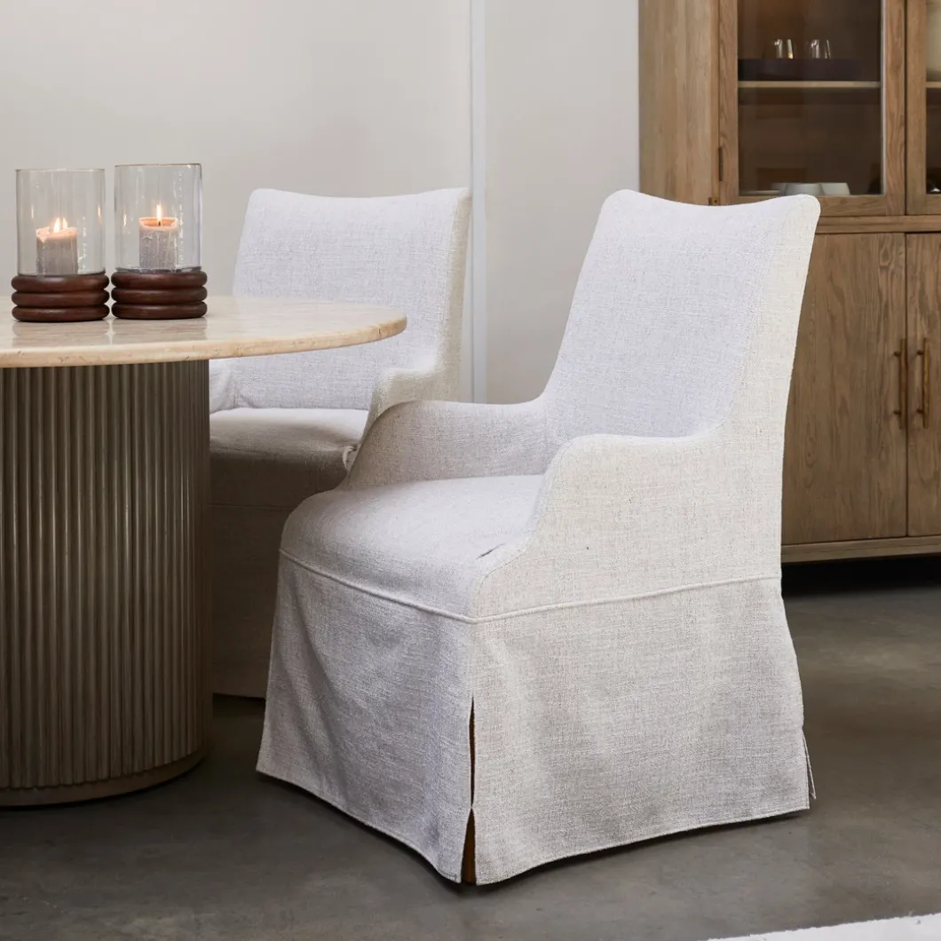 - De Monti eetkamerstoel in Antique White met armleuningen biedt een perfecte mix van comfort en stijl. Bekleed met een losse hoes, combineert deze stoel praktische functionaliteit met elegante uitstraling. Ideaal voor elke eetkamer, voegt het een verfijnde touch toe aan je interieur en garandeert een comfortabele zitervaring.