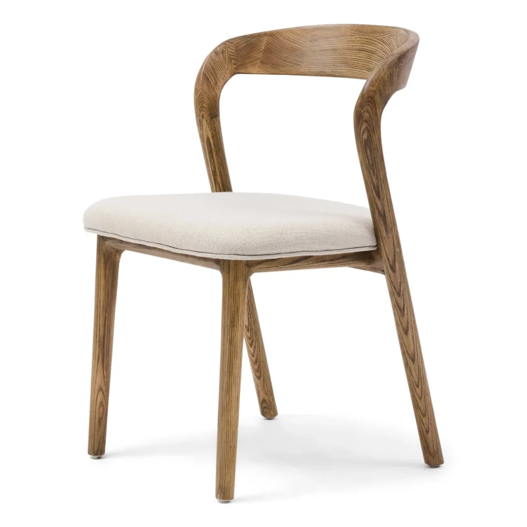 Met zijn bol lopende rugleuning biedt de Puglia eetkamerstoel extra comfort en een moderne uitstraling. Het Scandinavische ontwerp met een houten frame en een comfortabel witte kussen maakt deze stoel perfect voor lange diners of gezellige bijeenkomsten. Het tijdloze design voegt een warme, uitnodigende sfeer toe aan je eetkamer, en de ronde rugleuning zorgt voor een perfecte ondersteuning. Een stijlvolle en praktische aanvulling op je interieur.