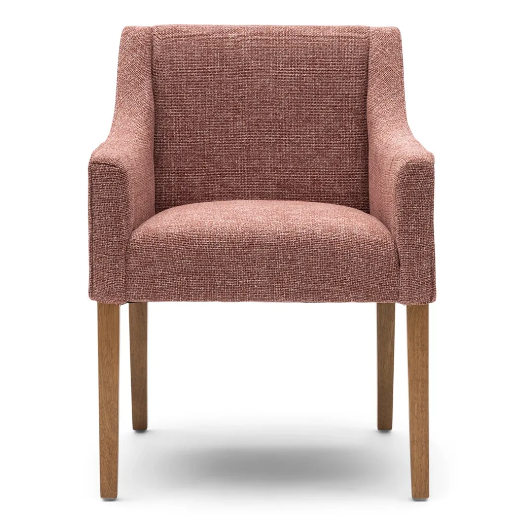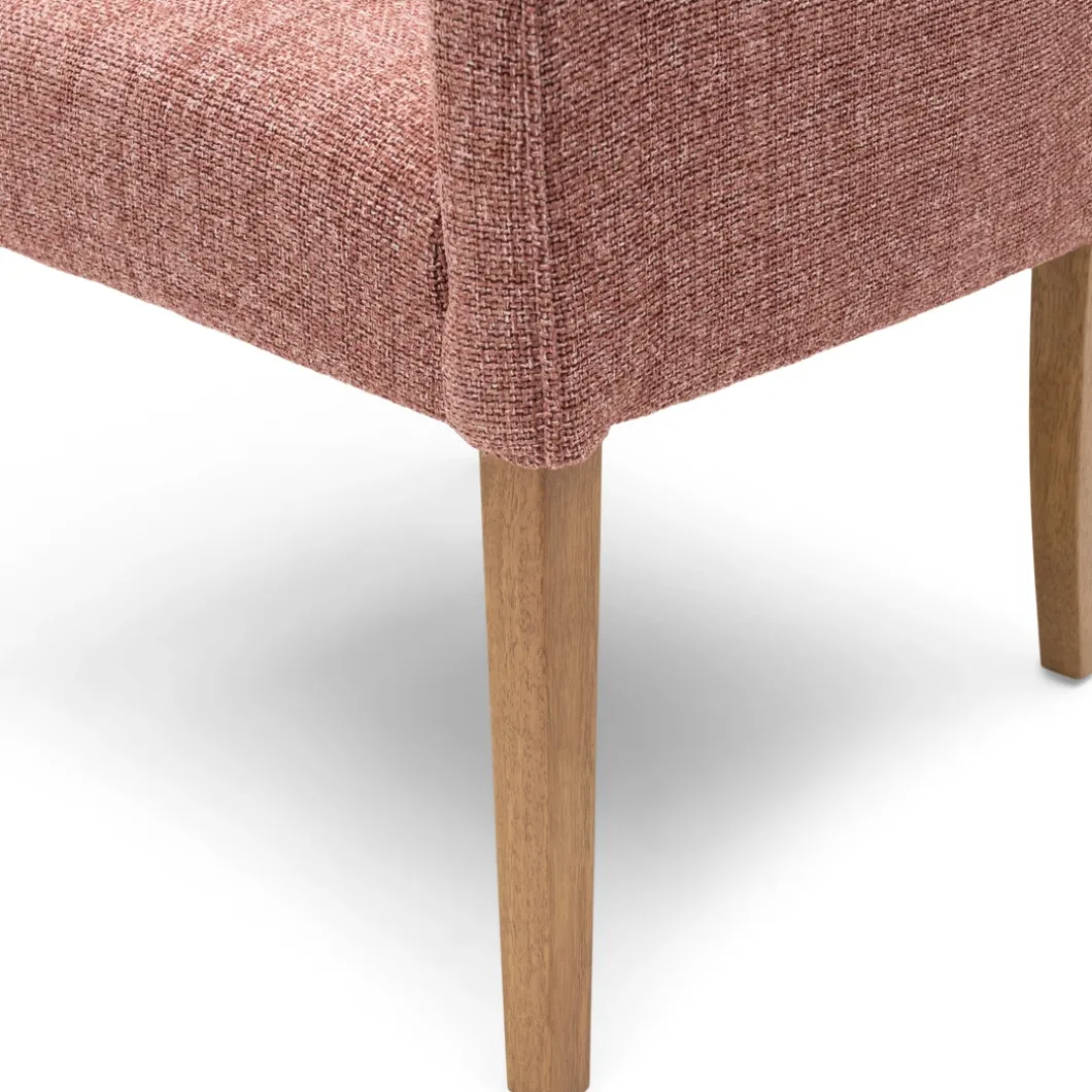 Ervaar luxe en comfort met de Savile Row eetkamerstoel. De zachte chenille jacquard stof in Coral Pink omhult je in stijl, terwijl de strakke zwarte poten een moderne uitstraling geven. Een tijdloos design dat elke eetkamer transformeert in een warme, elegante ruimte.