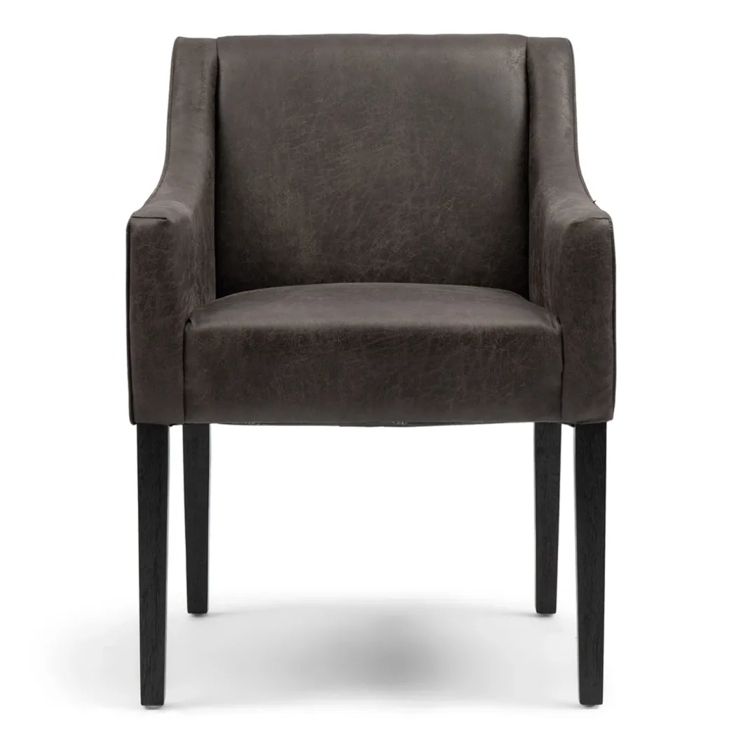 Eetkamerstoel Savile Row in de Pellini stof, in de kleur Espresso is de stoel die je zoekt! Een tijdloos design, met comcortabe armleuningen in combinatie met de strakke zwarte rubberhouten poten straalt deze stoel moderne elegantie uit. Met een comfortabele afmeting van 61x56x86 cm, past deze stoel goed in elk interieur.