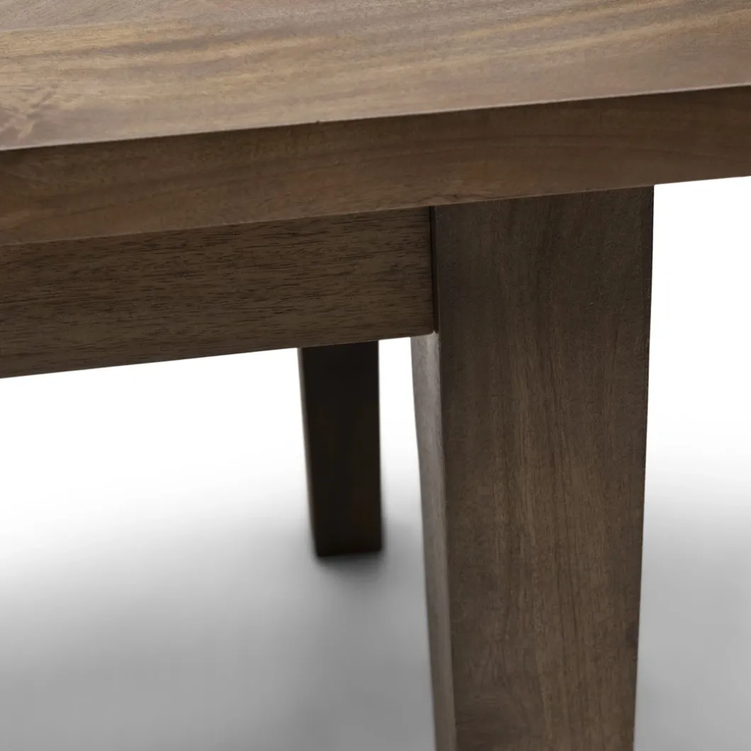 Dit is de verlengde, uitschuifbare Bodie Hill Eettafel, wat betekent dat er in het midden één deel is waarmee je de tafel kunt uitbreiden. Met dit middendeel ertussen is de tafel 260 cm lang. Ideaal voor groot diner met familie en vrienden. De tafel heeft een blad van mangohout en vier poten die op de grond samenkomen tot een stevig, smaakvol frame.