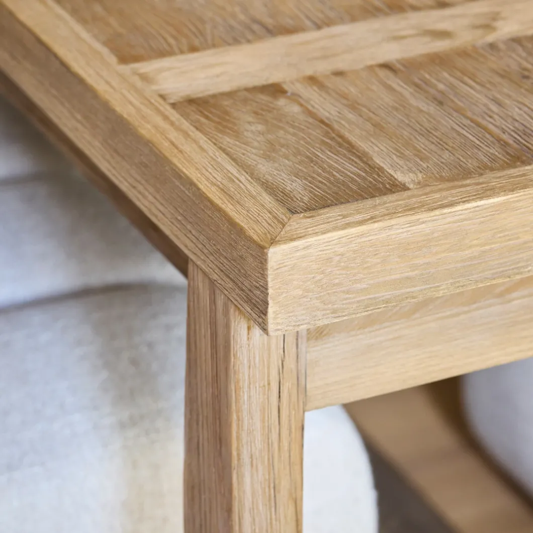 Deze versie van de Fraser Island Eettafel is een versie van 220×90 CM. Doordat de tafel vrij lang is, is het echt aan statement in je eetkamer. Het blad is gemaakt van recycled eikenkout. Met gebruik van verschillende kleuren van het hout krijgt de tafel een mooi effect.