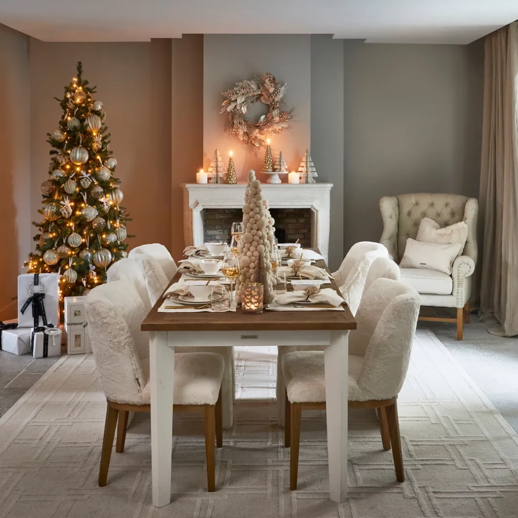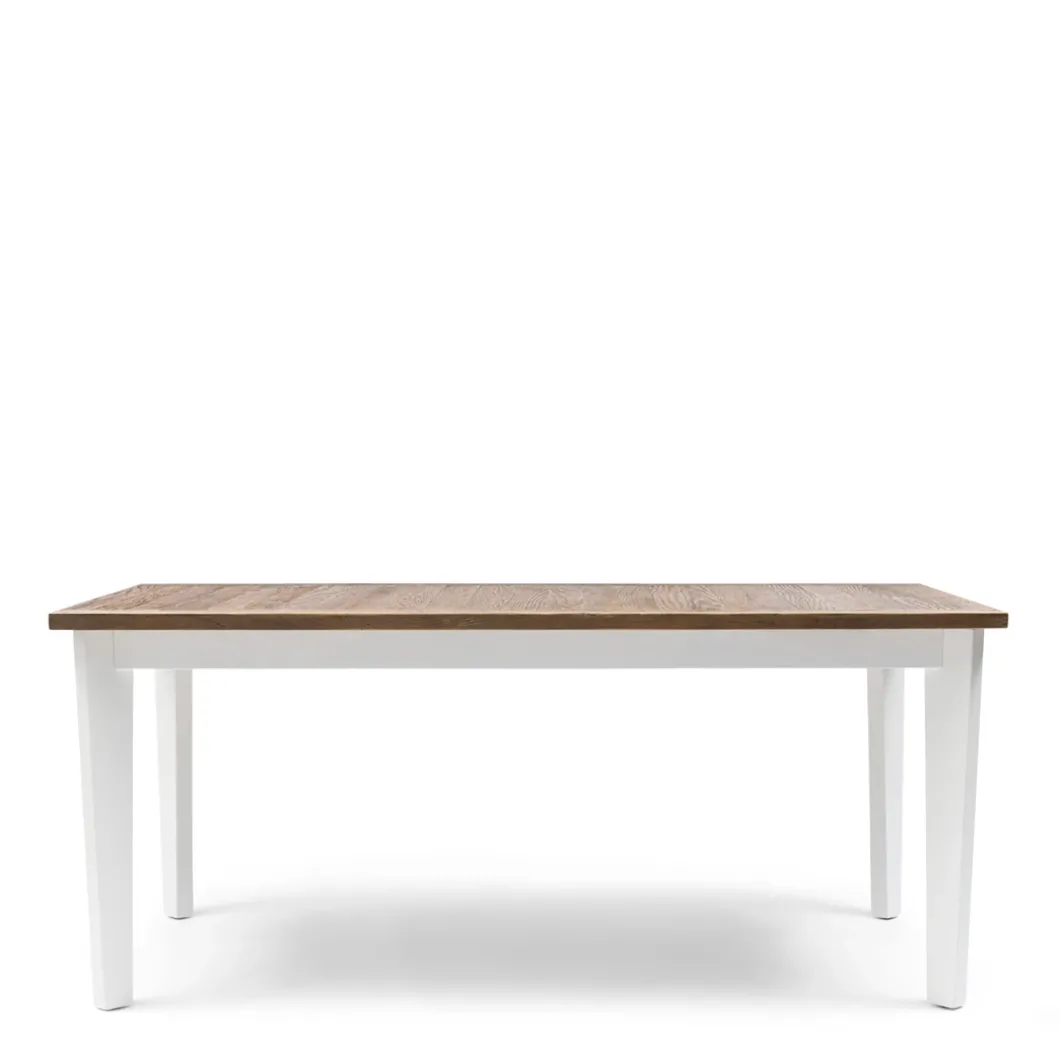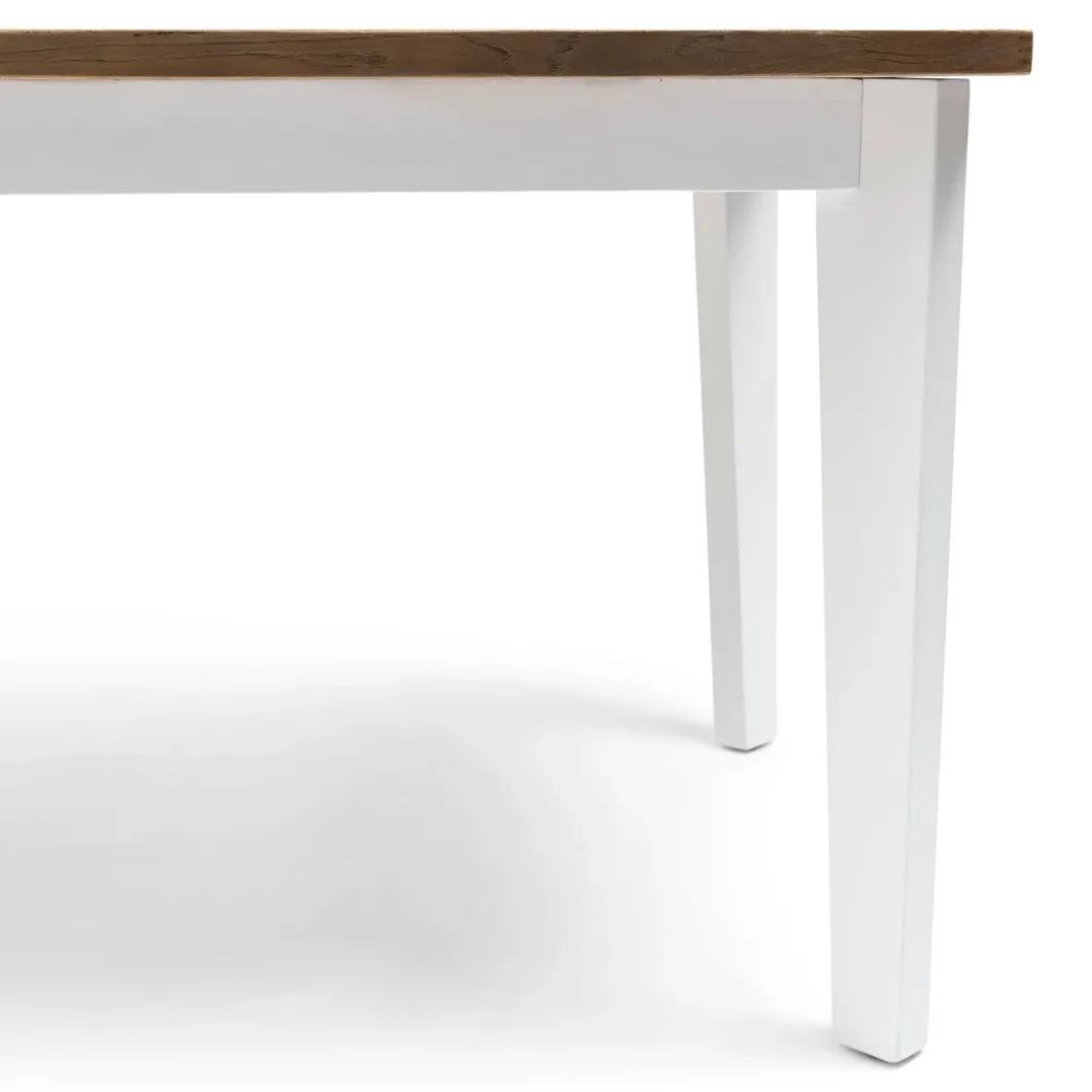 - Geef je interieur een verfijnde uitstraling met deze klassieke eettafel. Het lichte houten blad, met unieke nerven, voegt een warme en authentieke charme toe aan je ruimte. De frisse witte poten en lijst versterken de elegante uitstraling en zorgen voor een tijdloze look. De diagonale poten creëren niet alleen een gevoel van ruimte, maar bieden ook een luchtig en modern effect. Deze tafel is de perfecte combinatie van vakmanschap en praktische schoonheid, ideaal om een stijlvol statement te maken in je interieur.