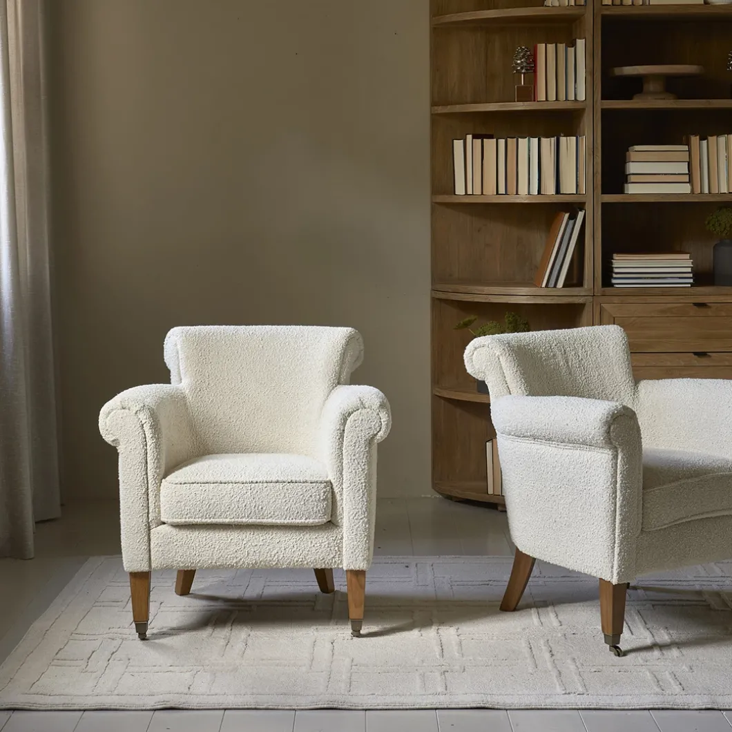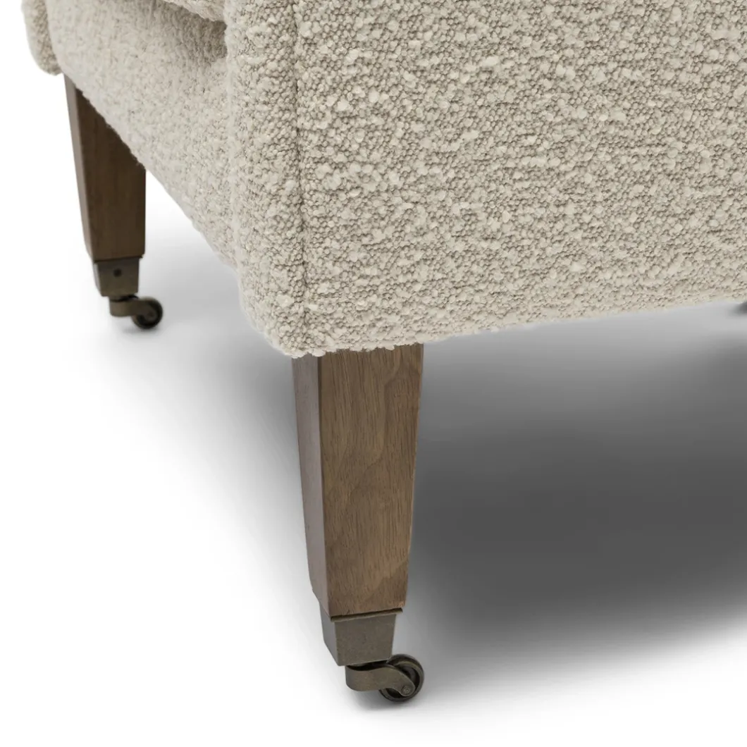 Dompel jezelf onder in pure luxe met de charmante Paramount Armchair, White Sand, in Bouclé stof. Dit design combineert de on-trend stof met een heerlijk comfortabel zitcomfort. Dit ontwerp is gerelaunched ter ere van het 75 jarig bestaan van RM! De voorpoten zijn voorzien van wieltjes, wat deze tijdloze armchair qua look juist compleet maakt. Met een afmeting van 79x79x82 cm is deze zetel perfect voor zowel kleinere als grotere ruimtes.