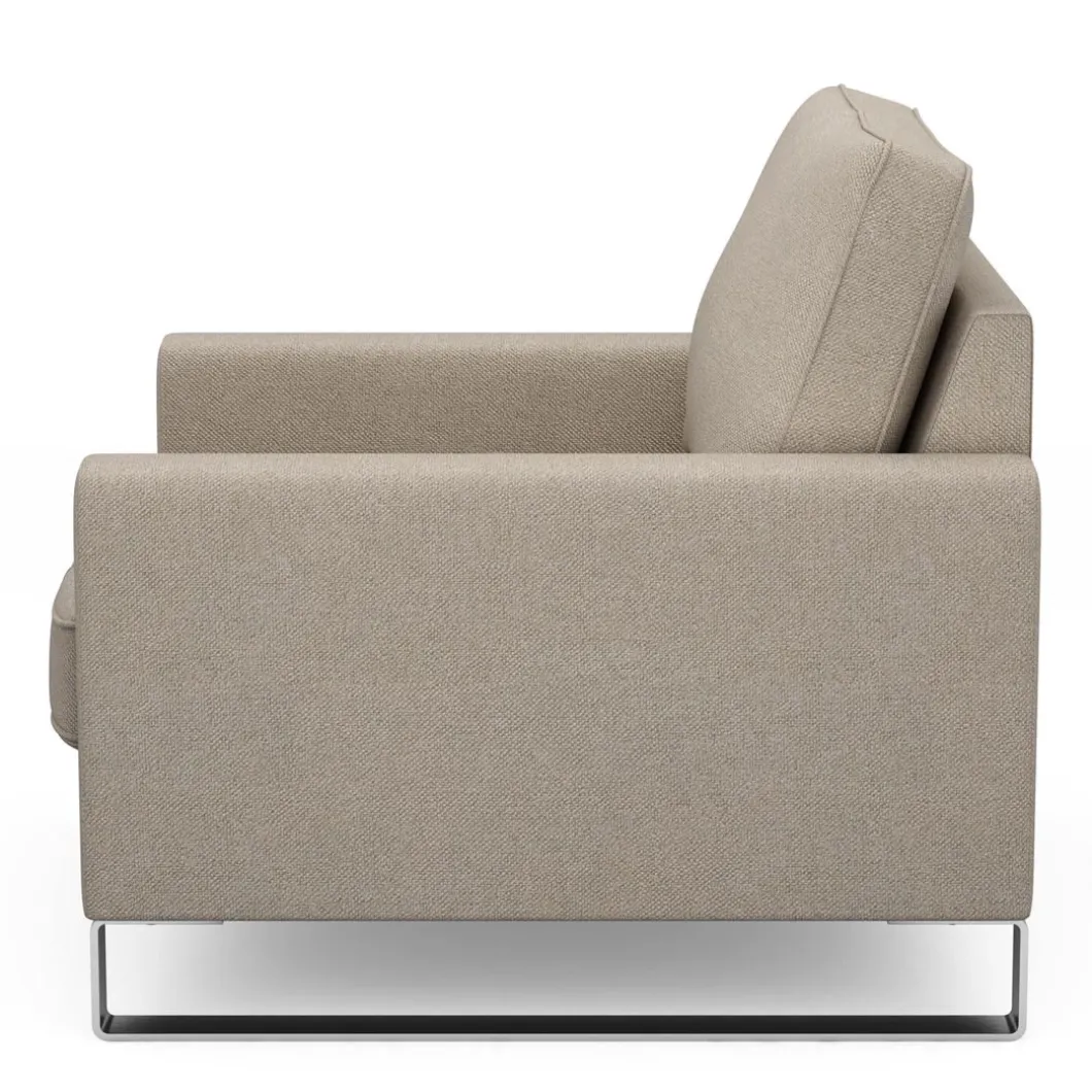 Een stevige fauteuil om een heerlijke avond in door te brengen. Staat goed, zit lekker en blijft goed van model. Zijn stoere uiterlijk is ietwat misleidend, want dit zitmeubel is heel comfortabel. Gemaakt van beukenhout, ijzer en polyester. Verwijder vlekken voorzichtig met de hand. De maten van deze fauteuil: b 85 cm x h 85 cm x d 90 cm.