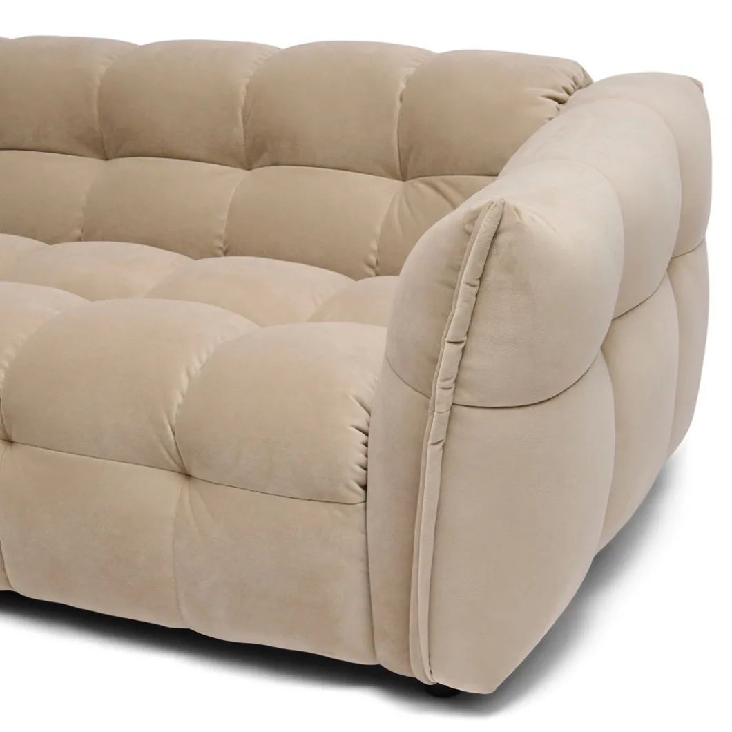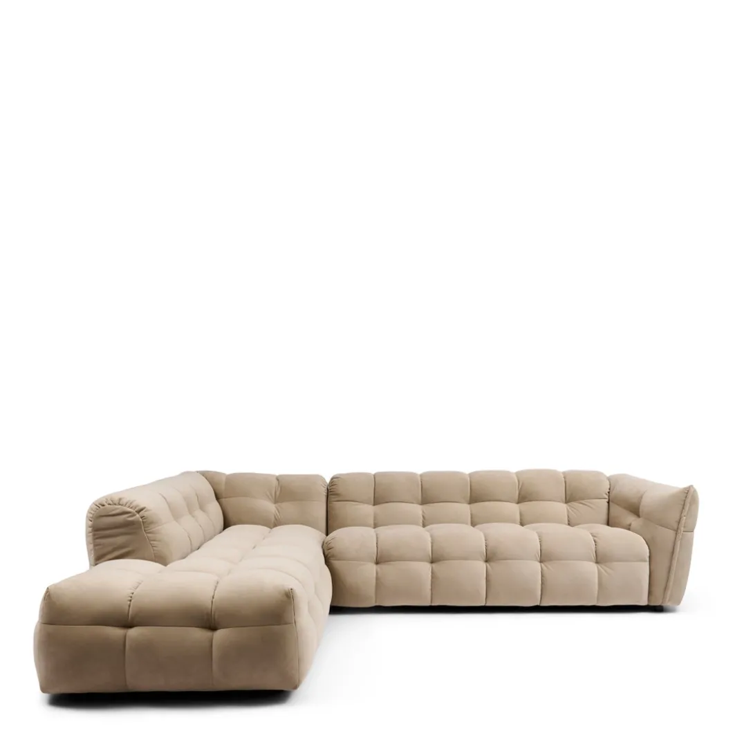 De Imperial hoekbank is een samensmelting van modern design en ongeëvenaard comfort. Bekleed met een luxueuze velvet stof in de Rich Almond kleur, straalt deze bank warmte en elegantie uit. Het unieke bolvormige blokdesign en de verborgen pootjes geven een eigentijds, zwevend effect dat perfect past in een modern interieur. Deze ruime bank nodigt uit tot ontspannen avonden met vrienden en familie, terwijl hij je woonkamer transformeert in een stijlvolle en gezellige ruimte. Laat je inspireren door de luxe en het comfort van de Imperial hoekbank.