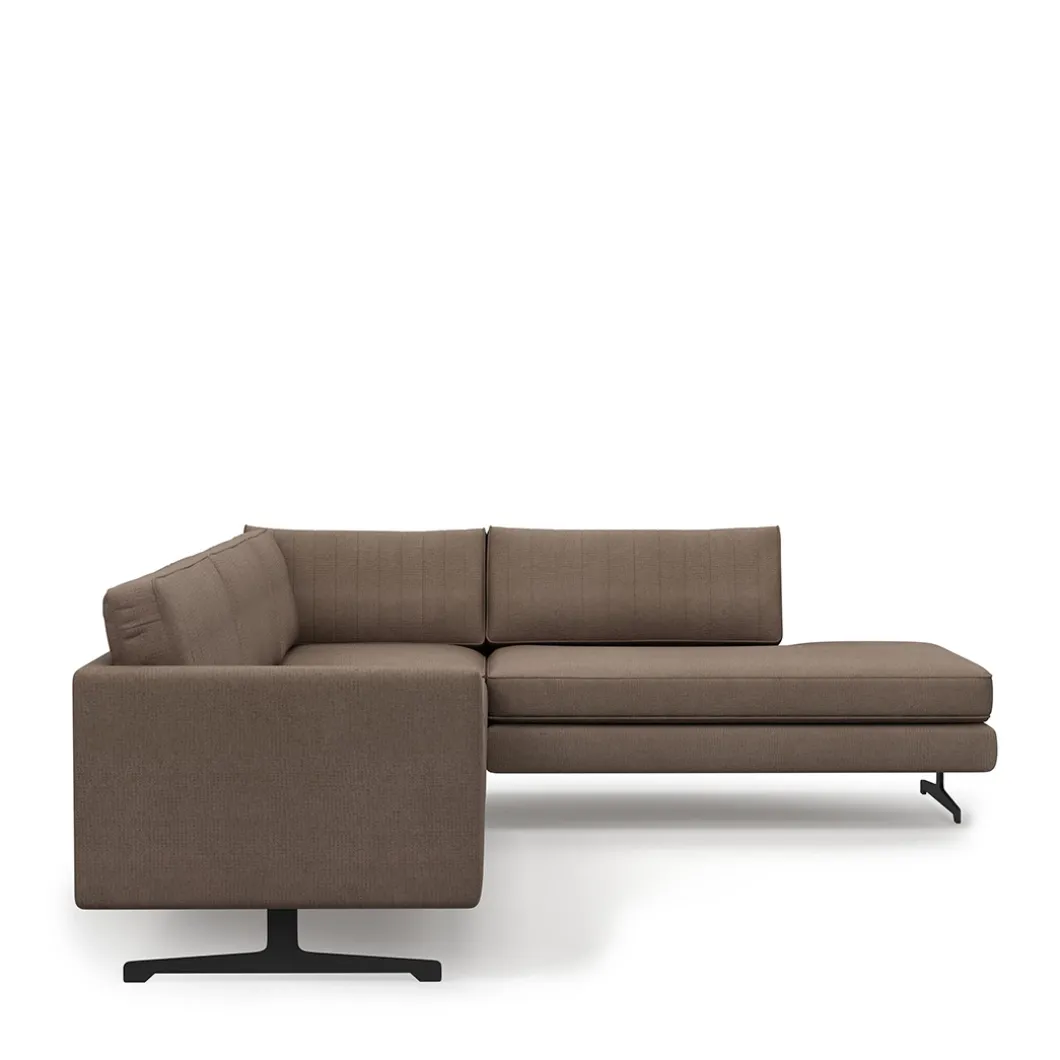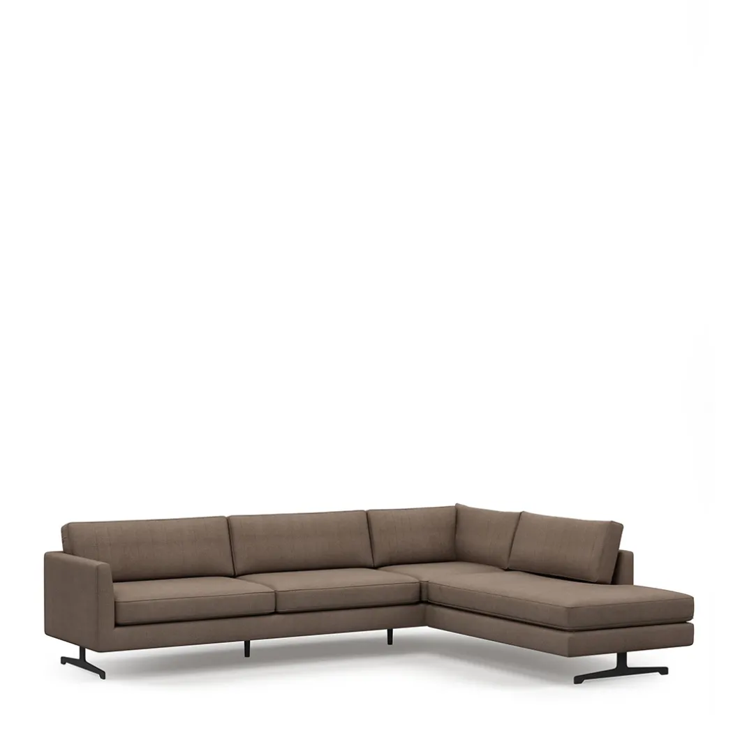 De Camille Corner Sofa Right is een hoekbank met een luxe uitstraling die bestaat uit een breed zitgedeelte en een chaise longue om ontspannen in onderuit te zakken. Het draaibare rugkussen heeft een egale zijde en een zijde met verticale stiksels. De Camille-hoekbank is verkrijgbaar in verschillende kleuren en stofferingen en naar wens met een hoek aan de rechterzijde.