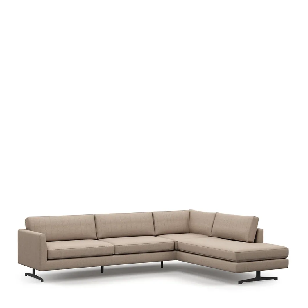 De Camille Corner Sofa Right is een hoekbank met een luxe uitstraling die bestaat uit een breed zitgedeelte en een chaise longue om ontspannen in onderuit te zakken. Het draaibare rugkussen heeft een egale zijde en een zijde met verticale stiksels. De Camille-hoekbank is verkrijgbaar in verschillende kleuren en stofferingen en naar wens met een hoek aan de rechterzijde.