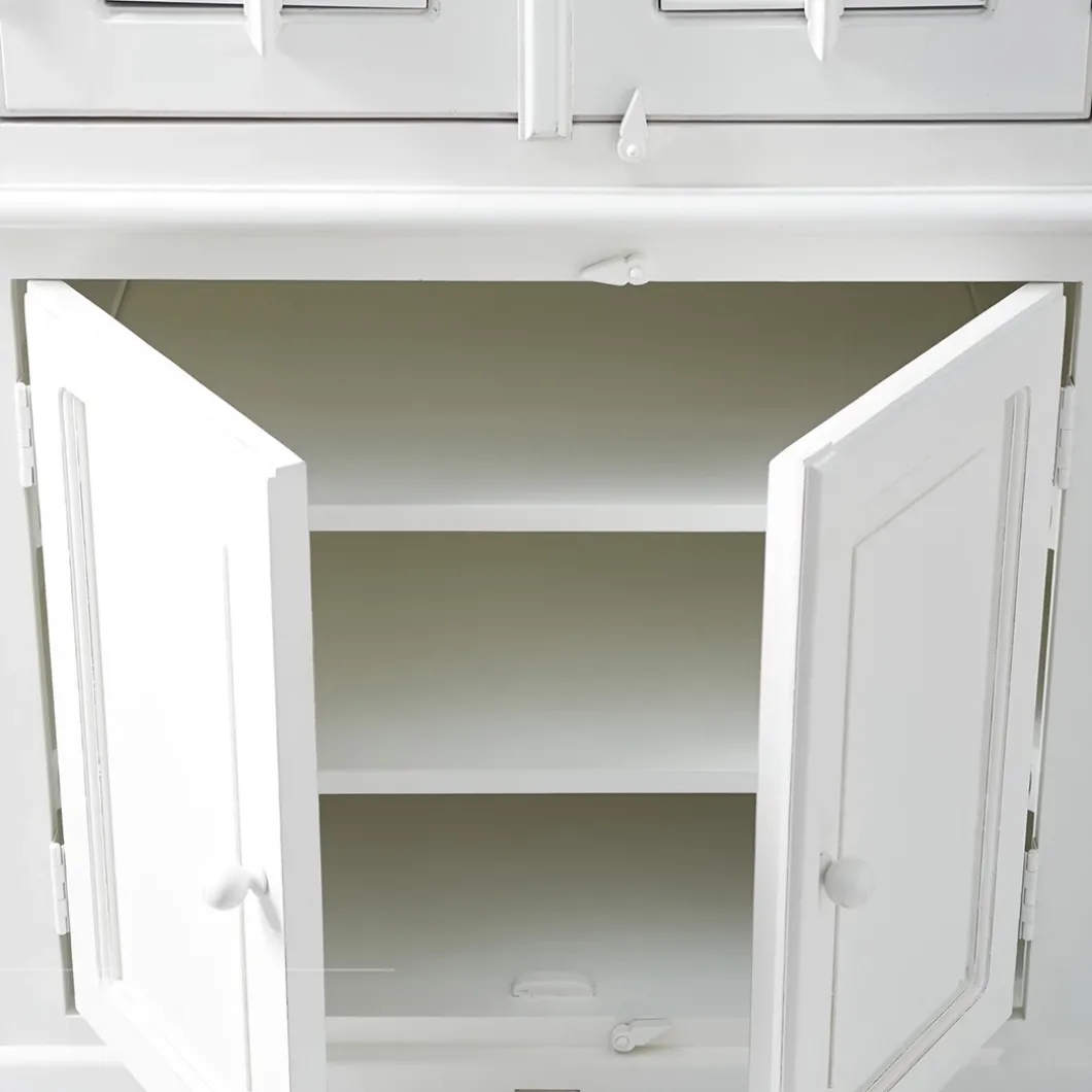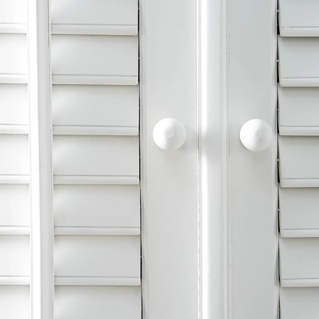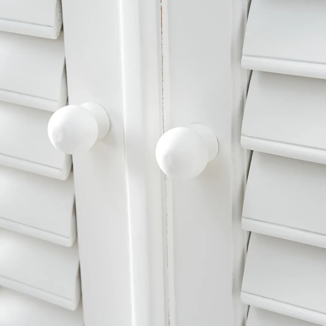 New Orleans is de grootste stad van de Amerikaanse staat Louisiana. De stad ligt aan de oevers van de rivier de Mississippi. Deze fris witte garderobekast van acaciahout is een mooie, ruime kast met beweegbare shutters. De bovenste helft biedt één vaste plank, een roede en twee verplaatsbare planken, en achter de onderste deuren bevinden zich nog drie planken.
