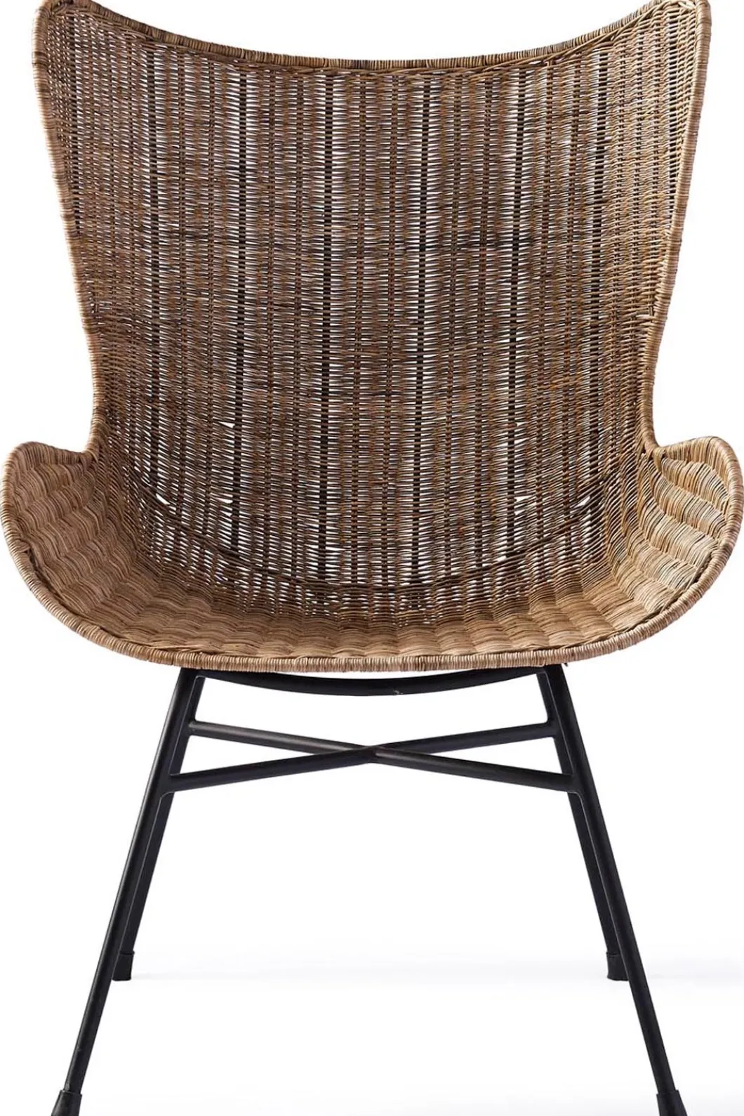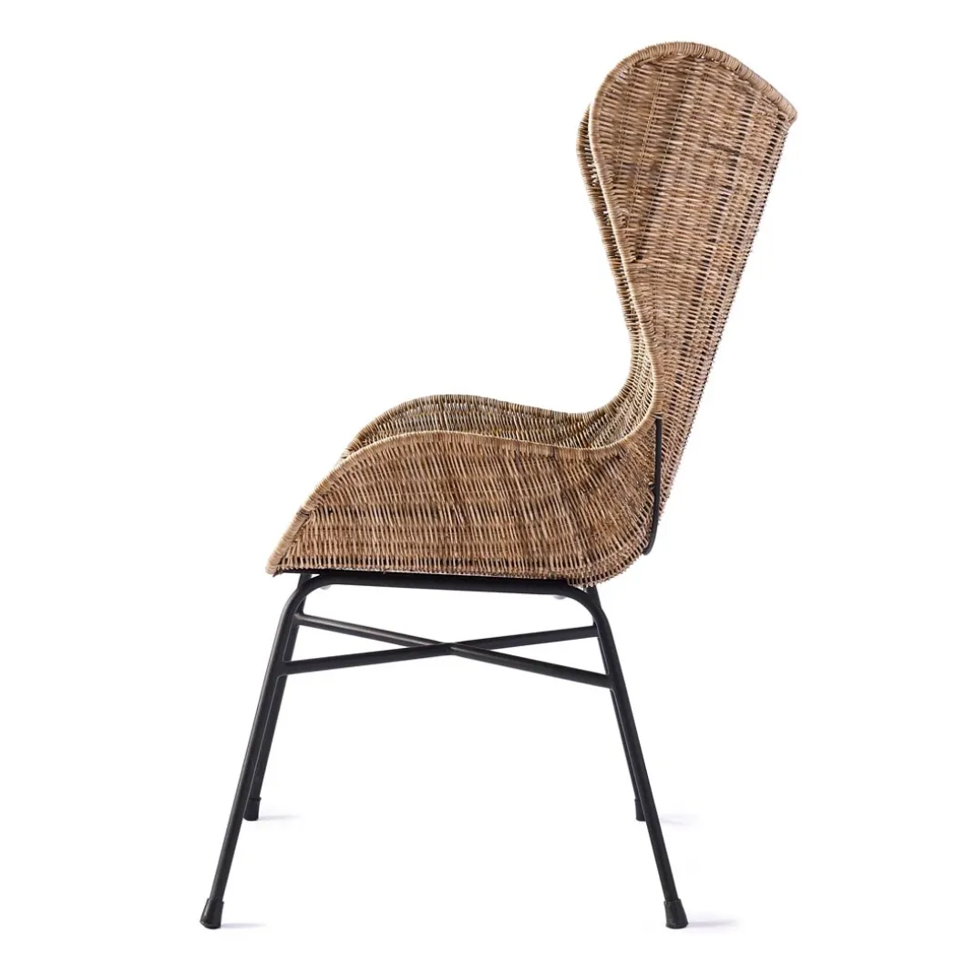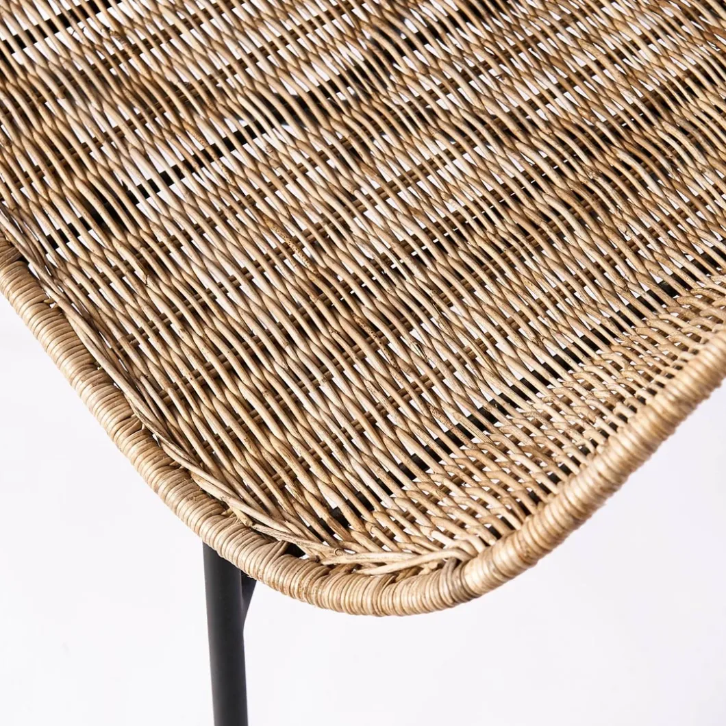 Een stoel die er leuk uitziet en ook nog eens lekker zit, zelfs zonder kussen(s). Van mooi dun rattan met metalen poten die rubber dopjes hebben. Door het materiaal komt de stoel absoluut niet massaal over, dus hij komt overal tot zijn recht en biedt tegelijkertijd comfort. De afmetingen zijn 70 x 60 cm en de hoogte is 1.05 m. Mooie rondingen geven de stoel iets elegants en door het ontbreken van armleuningen kunnen ook degenen met wat bredere heupen plaatsnemen.