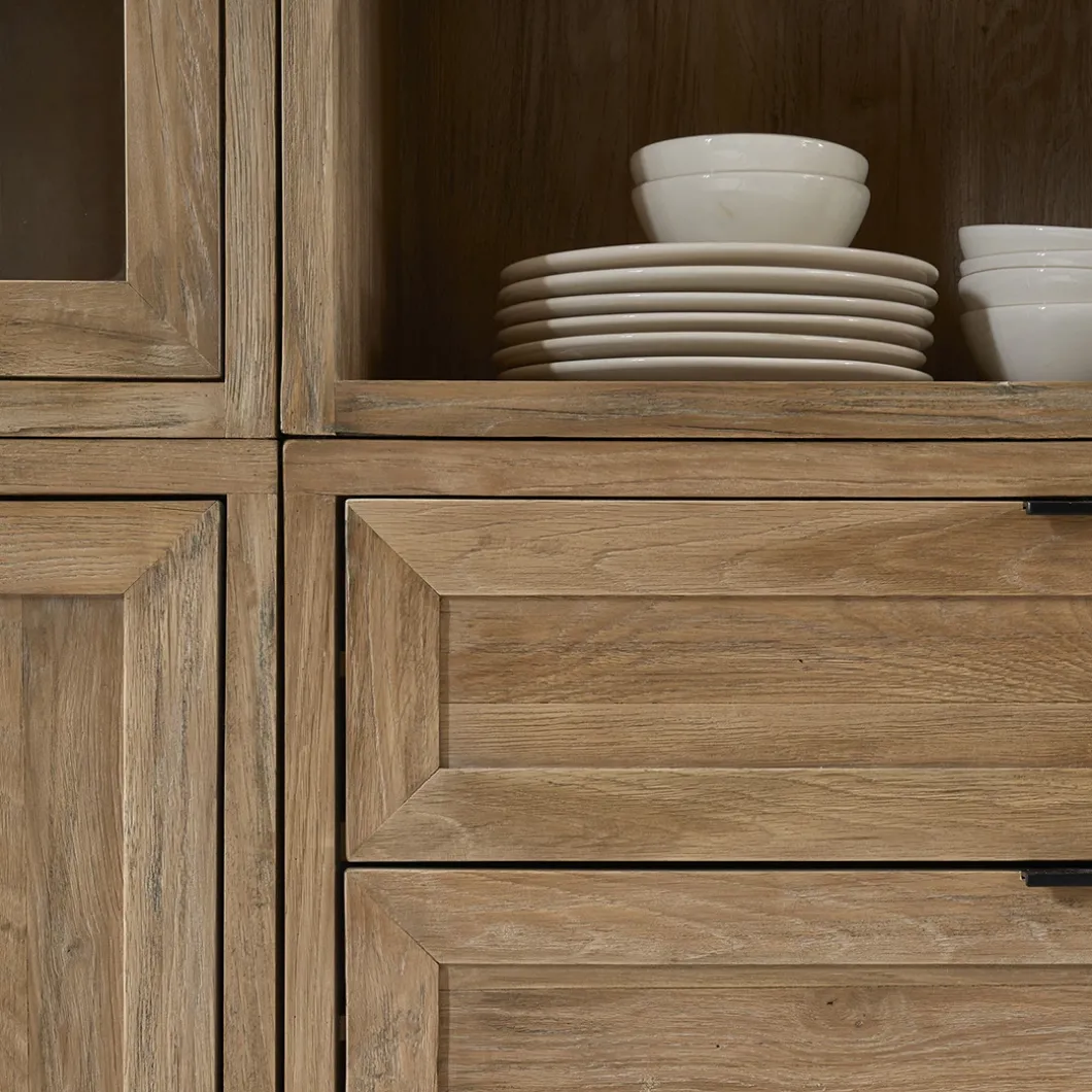 De ladekast Del Rey van Rivièra Maison uit de Del Rey modulaire kasten serie en deze kun je naar wens samenstellen. Deze ladekast heeft een afmetingen van 80x42x85 cm geeft veel opbergruimte en is gemaakt van reclaimed eikenhout. Op zich zelf is deze kast al prachtig en uit te breiden met de vele andere modulaire elementen uit deze serie. Stel je voor hoe de natuurlijke houttonen je kamer verrijken en je persoonlijke spullen een plek geven om te schitteren!