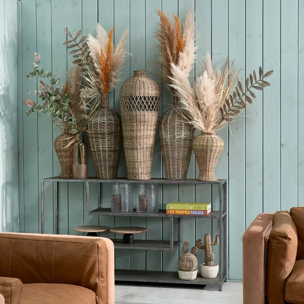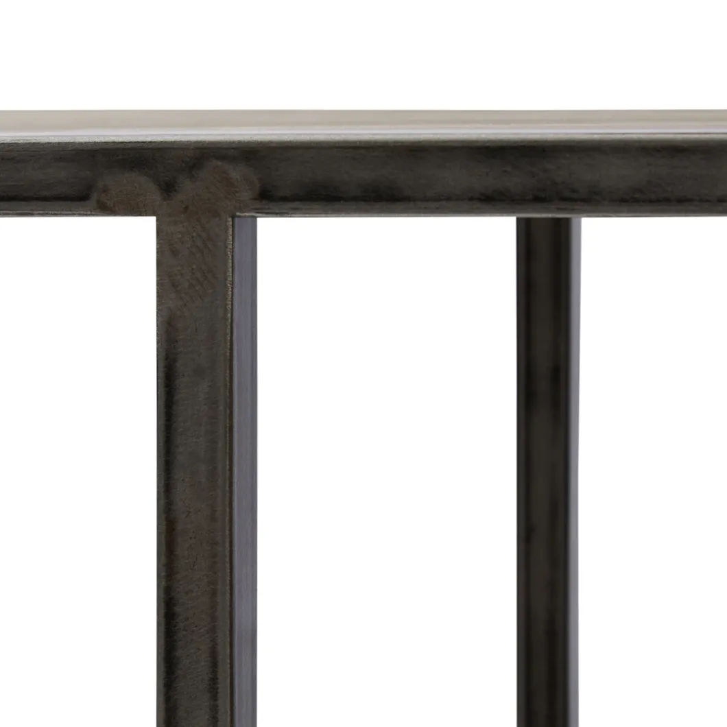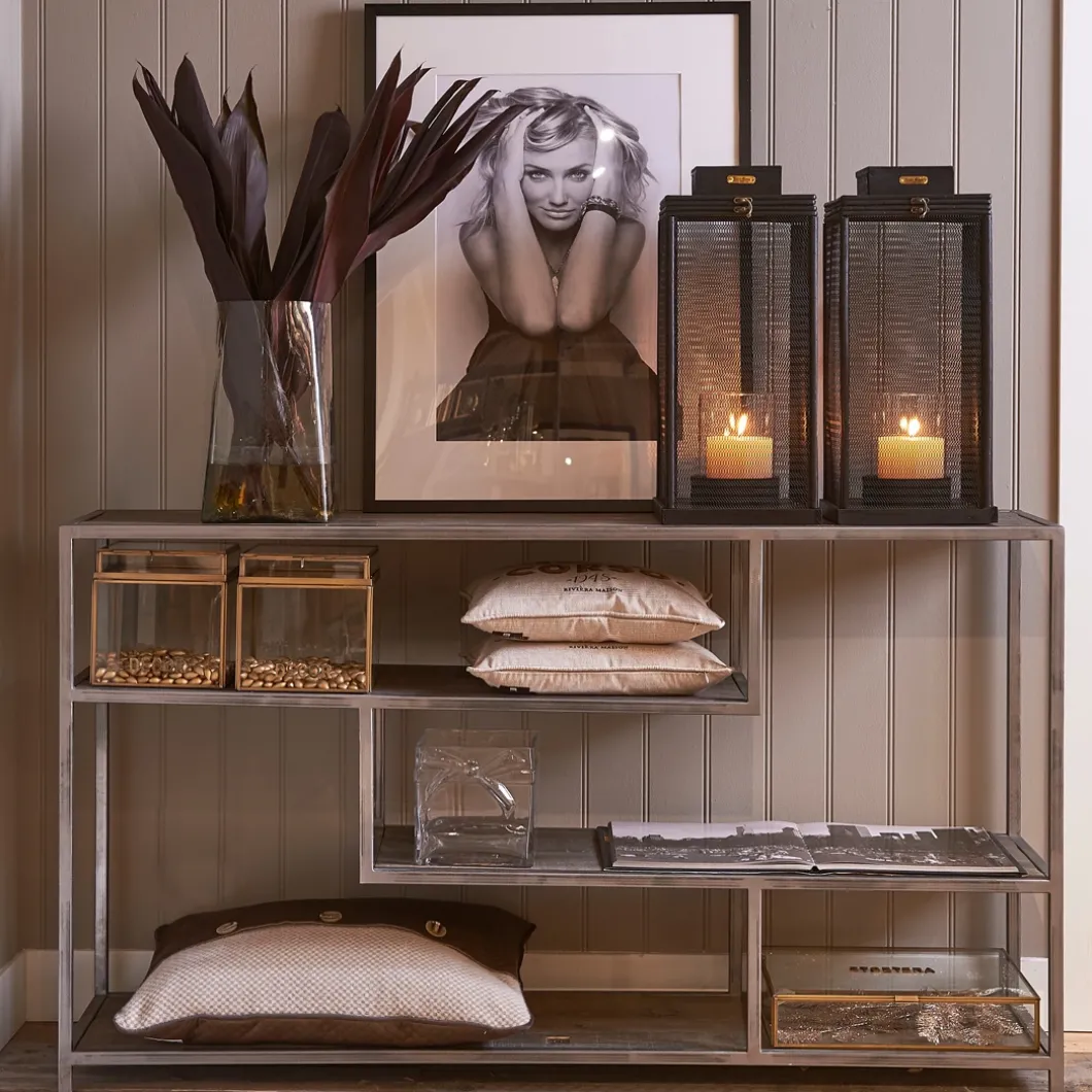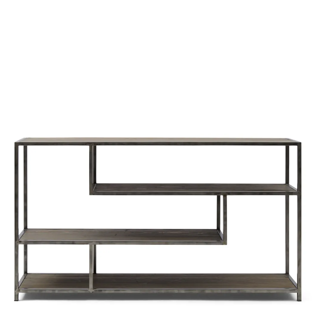 In een combinatie van verschillende gerecyclede houtsoorten is dit een prachtige, robuuste sidetabel. Behalve een strakke, stoere uitstraling door het samenspel van hout en metaal, is het ook nog eens een zeer praktisch meubelstuk. Zo heeft hij vier verschillende open vakken in verschillende hoogtes, waardoor er diverse attributen in te plaatsen zijn.