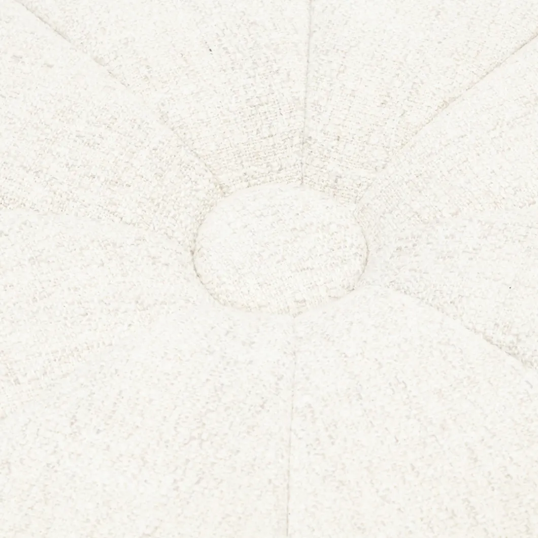 Ontdek de Falcone poef, Rich Tweed, in Antique White, een plaatje om te zien! Met zijn royale afmetingen van 72×41 cm past hij perfect in jouw woonkamer of op de slaapkamer. De rijke tweed stof en de off white kleur geven een warme en luxueuze uitstraling. De poef is gemaakt van de combinatie, polyester en rubberhout. De grote ronde knoop bovenop en de verticale stiksels geven deze poef een elegante maar ook een stoere uitstraling. Voeg een vleugje luxe toe in je huis!