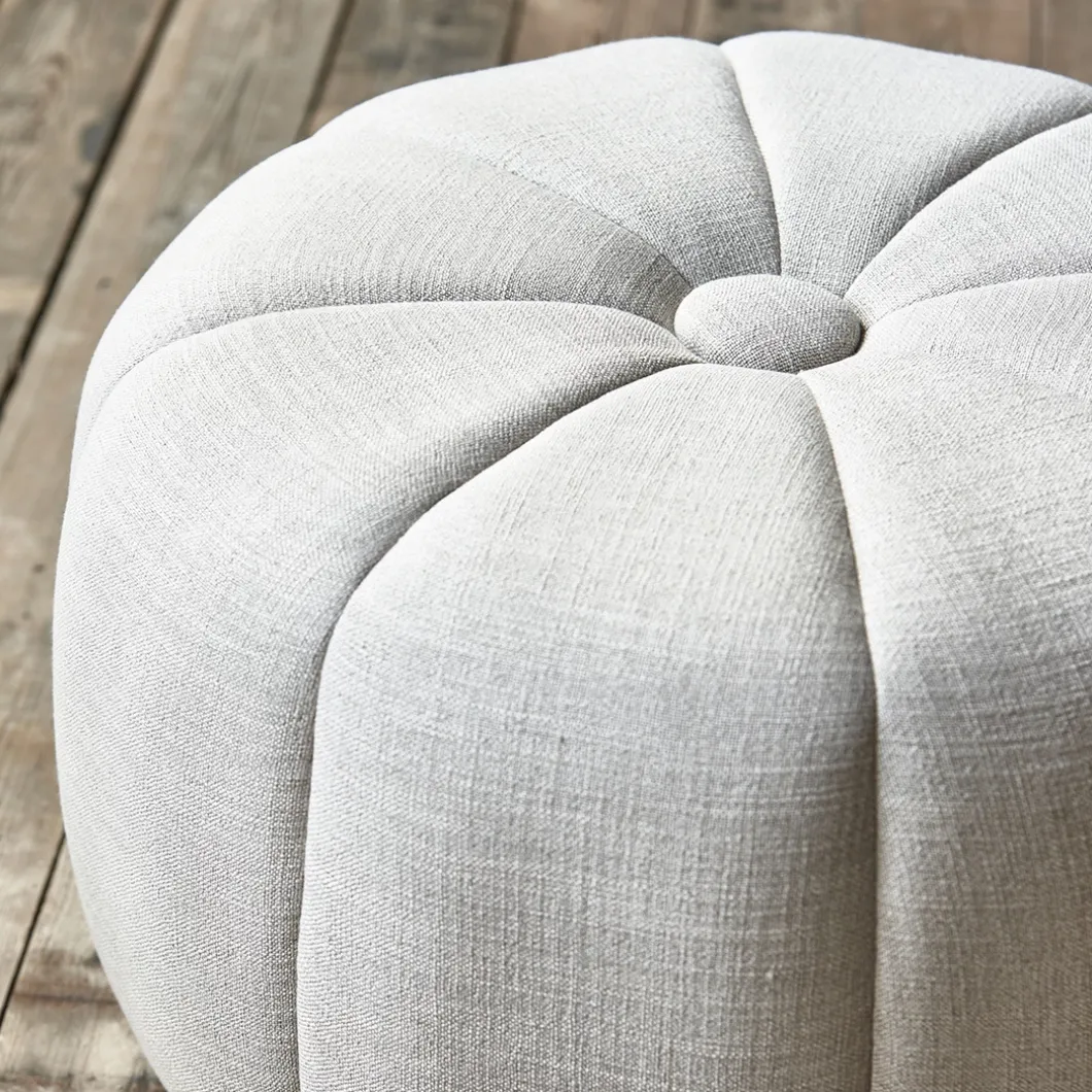Ontdek de Falcone poef in Mouline Linen in de kleur Fabulous Flax. Hij is een plaatje om te zien! Met zijn royale afmetingen van 72×41 cm past hij perfect in jouw woonkamer of op de slaapkamer. Gemaakt van een mooie combinatie van linnen, katoen, viscose en rubberhout. De grote ronde knoop bovenop en de verticale stiksels geven deze poef een elegante, maar ook stoere uitstraling. Voeg een vleugje luxe toe in je huis met deze poef!