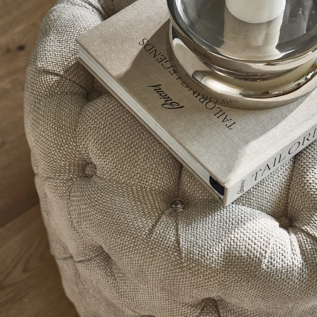 Ontdek de Opera Poef in Chelsea Flax – jouw ideale mix van stijl en comfort. De gecapitonneerde bekleding in crèmekleur voegt een vleugje luxe toe aan elk interieur. Dit veelzijdige voetenbankje past perfect in elke kamer en biedt de perfecte plek om te ontspannen na een lange dag. Met stevige houten poten en hoogwaardig vakmanschap is dit voetenbankje duurzaam en elegant.