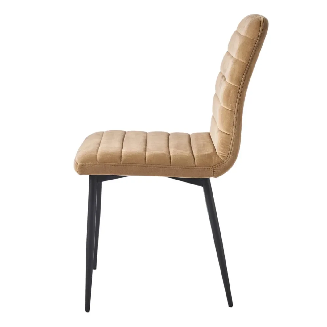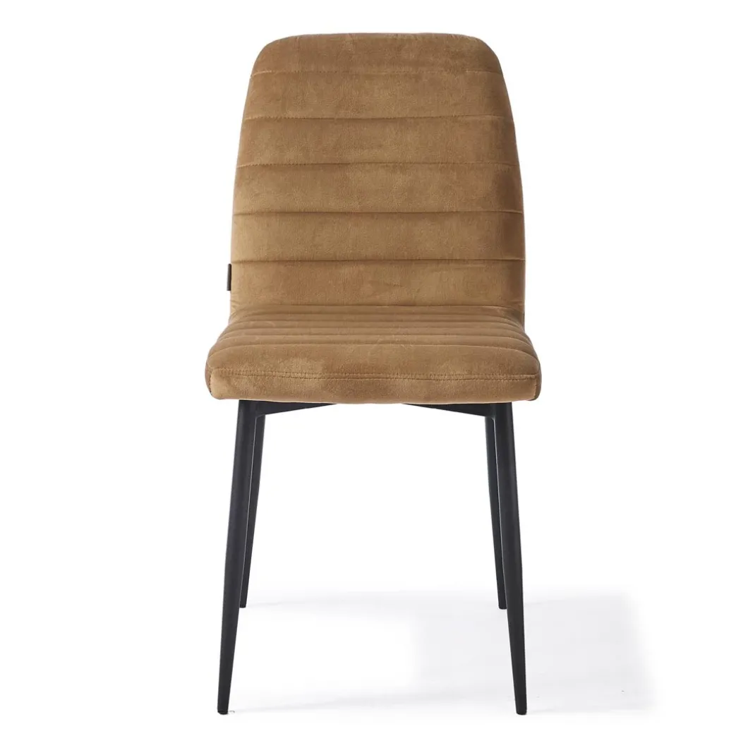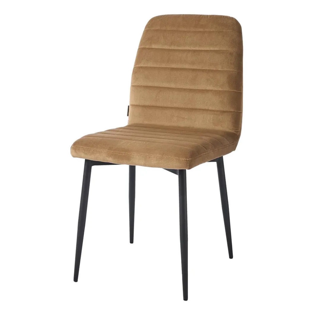 De Rockefeller eetkamerstoel knipoogt met zijn velours zitting en rugleuning, die in brede horizontale banen zijn gestikt, naar de klassiekers uit de jaren zeventig. De stoere, doch slanke zwart metalen poten geven hem een verfijnde industriële twist. Zo past deze stoel bij verschillende stijlen tafels. Dus mixen & matchen maar. De stoel is verkrijgbaar in verschillende kleuren.