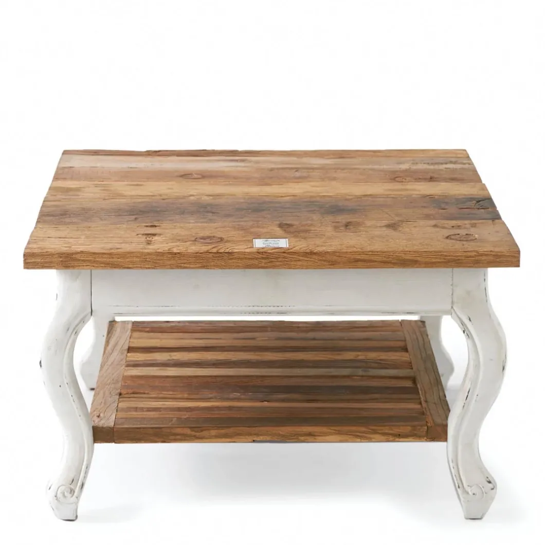 De tafelbladen van de Driftwood Collection zijn gemaakt van oude houten deuren; zelfs de afdrukken van de scharnieren en deurklinken zijn nog zichtbaar. Deze coffee table is ideaal als bijzettafel naast de bank. Plaats er een mooie lamp op, boek erbij, drankje bij de hand en geniet.