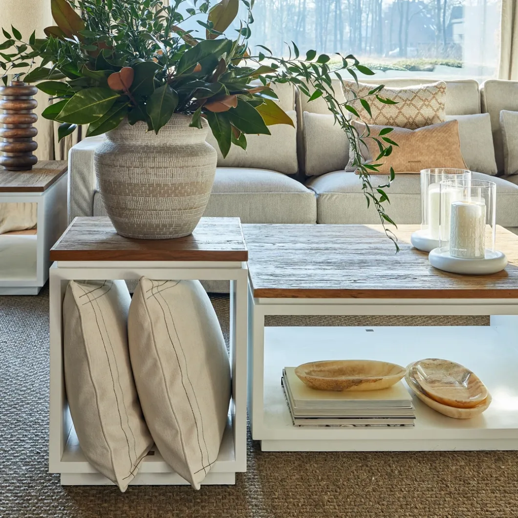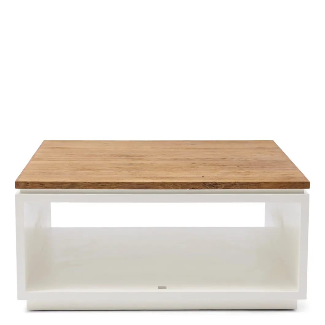 Ontdek de tijdloze charme van de Lake House salontafel, een prachtige aanvulling voor je woonkamer. Met afmetingen van 90×90 cm en een hoogte van 37 cm, past deze tafel perfect in jouw woonkamer. Het strakke, minimalistische ontwerp in combinatie met de witte basis en het warme reclaimed oakwood blad creëert een landelijke sfeer met een moderne twist. Deze tafel biedt niet alleen genoeg ruimte voor je favoriete boeken, decoraties of een gezellig kopje koffie, maar voegt ook een verfijnde en uitnodigende uitstraling toe aan je interieur.