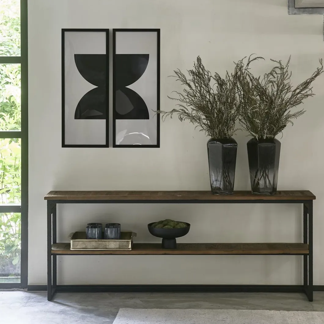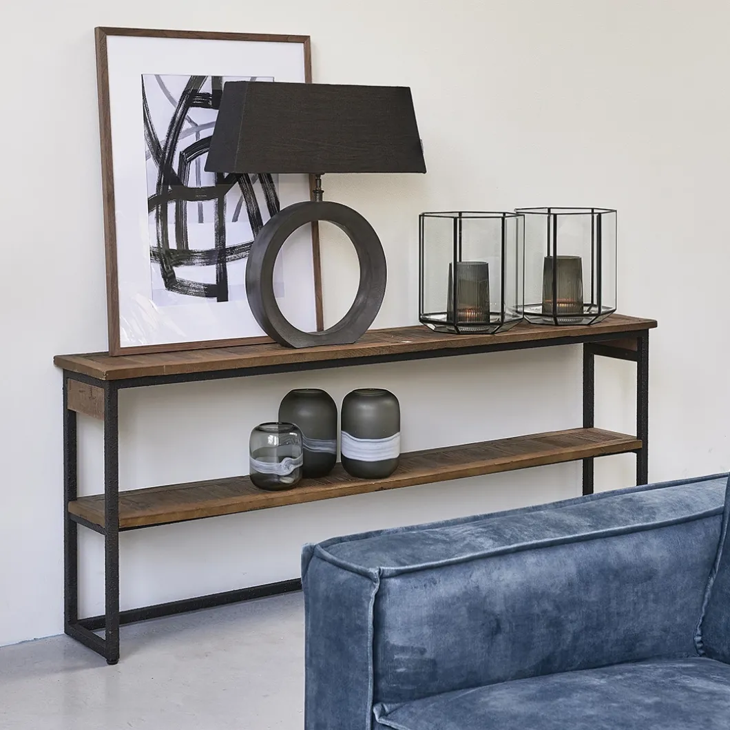 In prachtig oud iepenhout is dit een XL sidetable met een bijzonder zwart frame van gehamerd metaal. Doordat de sidetable wel lang, maar niet diep is neemt hij weinig ruimte in beslag. Zo staat hij perfect achter de bank of in de eetkamer achter de tafel als plek voor je accessoires. In deze serie zijn verschillende meubels verkrijgbaar.