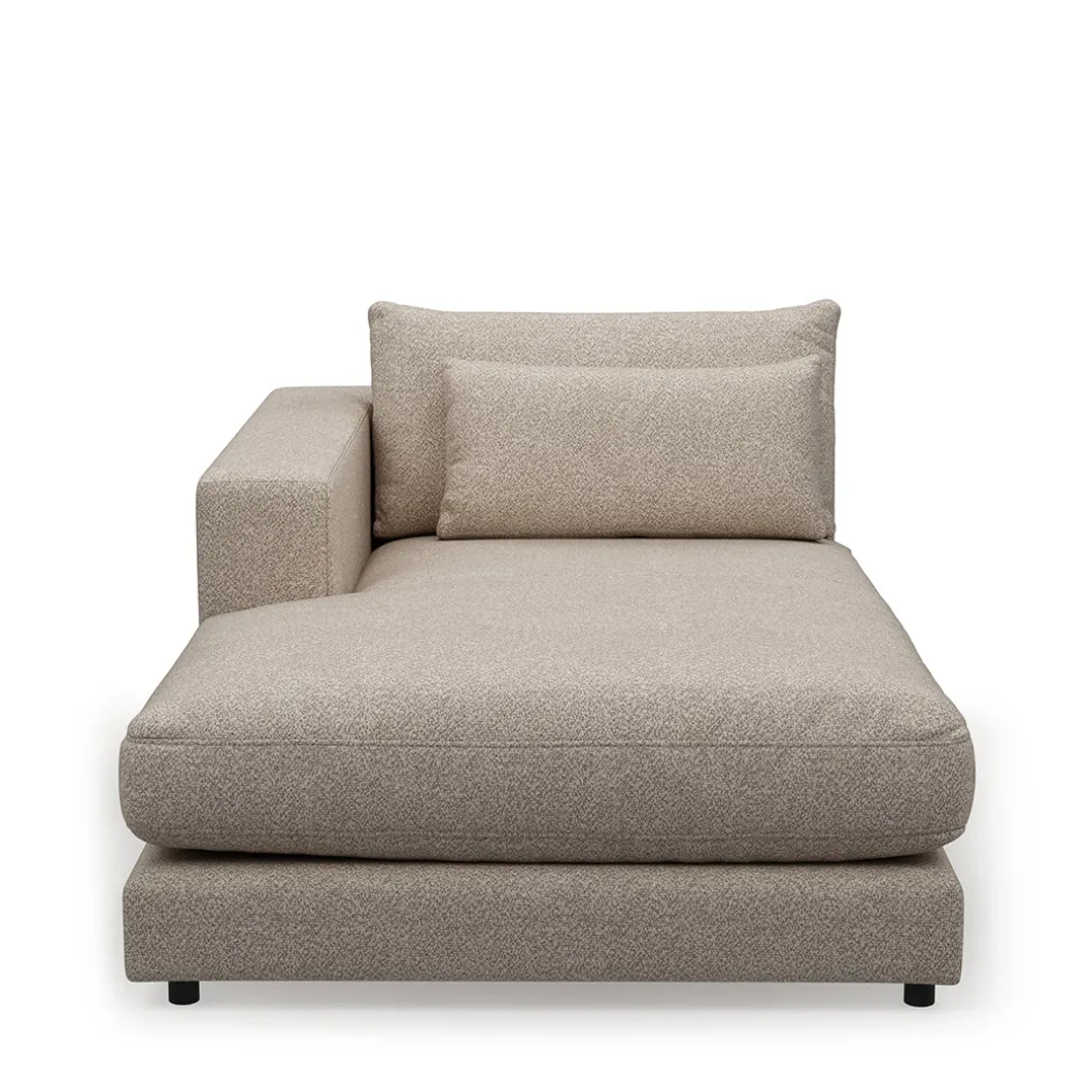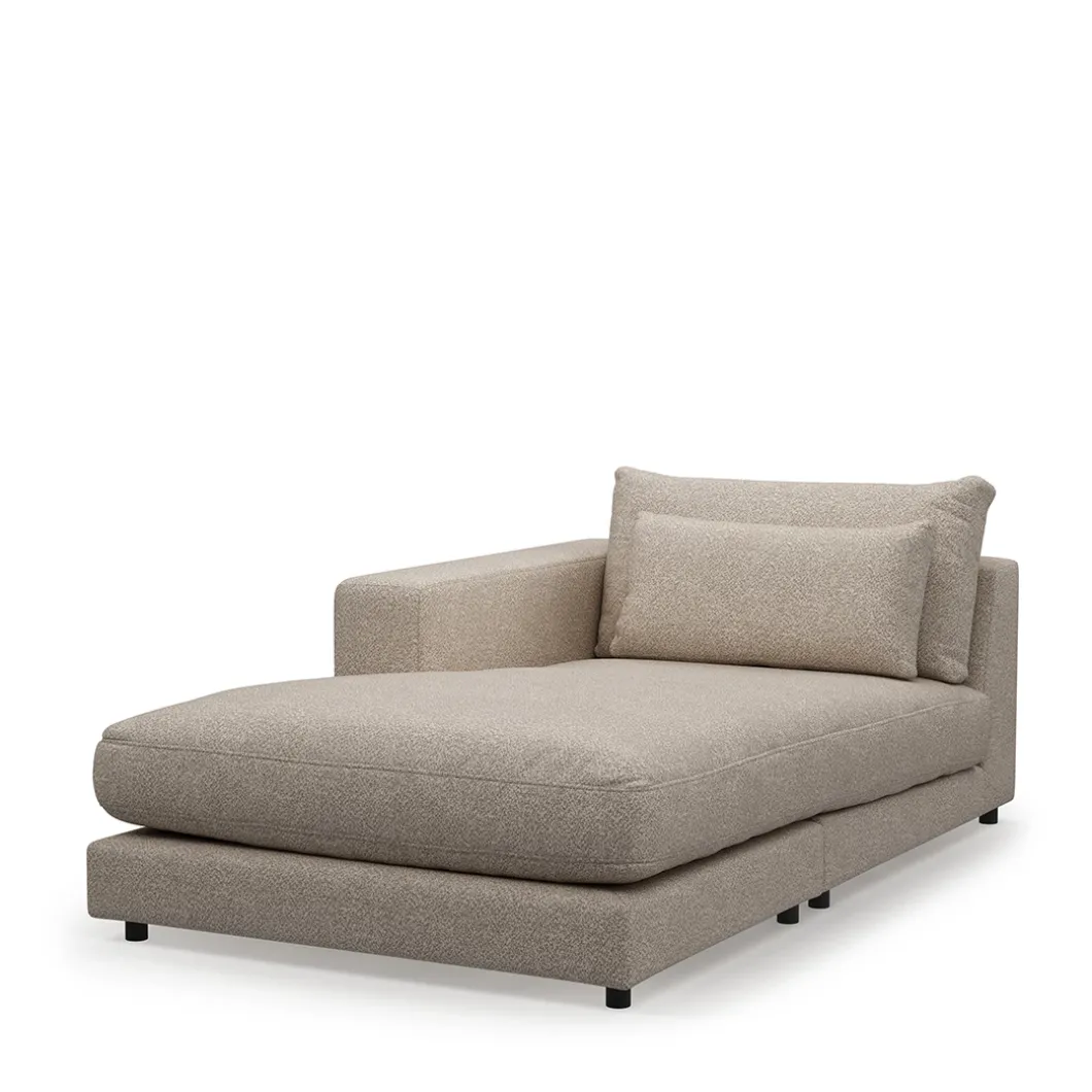 De Stephen-collectie is met deze chaise longue van de stof bouclé in de kleur dessert helemaal compleet. Er is een variant voor aansluiting rechts en een voor aansluiting links, net wat bij jouw zithoek past. Maak je interieur helemaal af met dit stijlvolle meubelstuk. Het onderstel is van beukenhout.