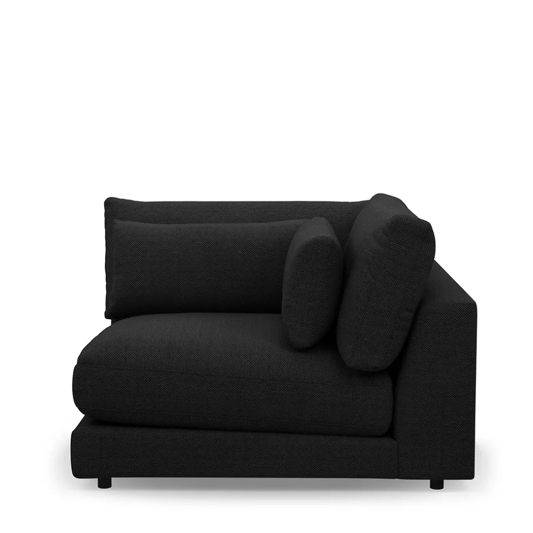 Maak kennis met de modulaire bankenserie Stephen. Dit is het hoekdeel met aan beide zijden een hoge rug. Hierdoor is hij ook perfect als losse loungestoel in het interieur te plaatsen. De bank heeft een lage, diepe zit en komt met extra losse kussens.