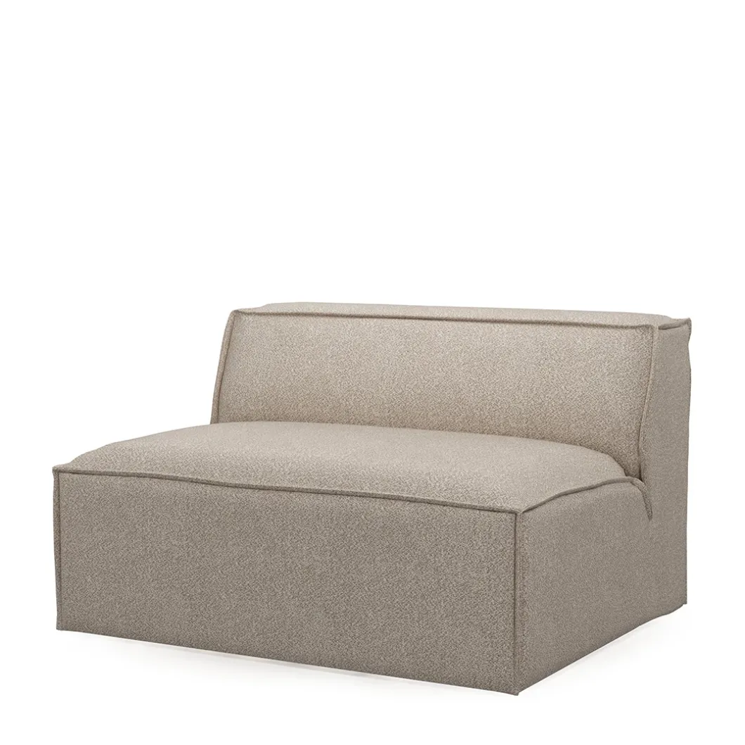 Dit stoere midden element van Jagger is een onderdeel uit één stuk. Gemaakt van beukenhout is het element niet te zwaar om desgewenst te verschuiven of op te tillen. De bouclé bekleding is lekker zacht en in verschillende kleuren te krijgen. Het middelste element is er in 95 cm en in 125 cm. Op die manier kan er naar believen worden “gebouwd”.
