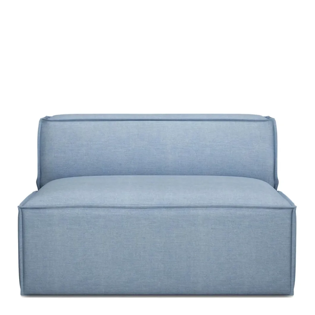 Deze moderne bank van katoen in prachtige ijsblauwe kleur is een echte eyecatcher. De bank bestaat uit verschillende componenten die u zo samen kunt stellen om de bank perfect in uw interieur te laten passen. Zo heeft u altijd een bank die helemaal naar u zin is. De losse delen zijn makkelijk aan elkaar te bevestigen en er zitten beukenhouten poten onder de bank. Het middenstuk is zo vaak in het geheel te plaatsen als u wenst.