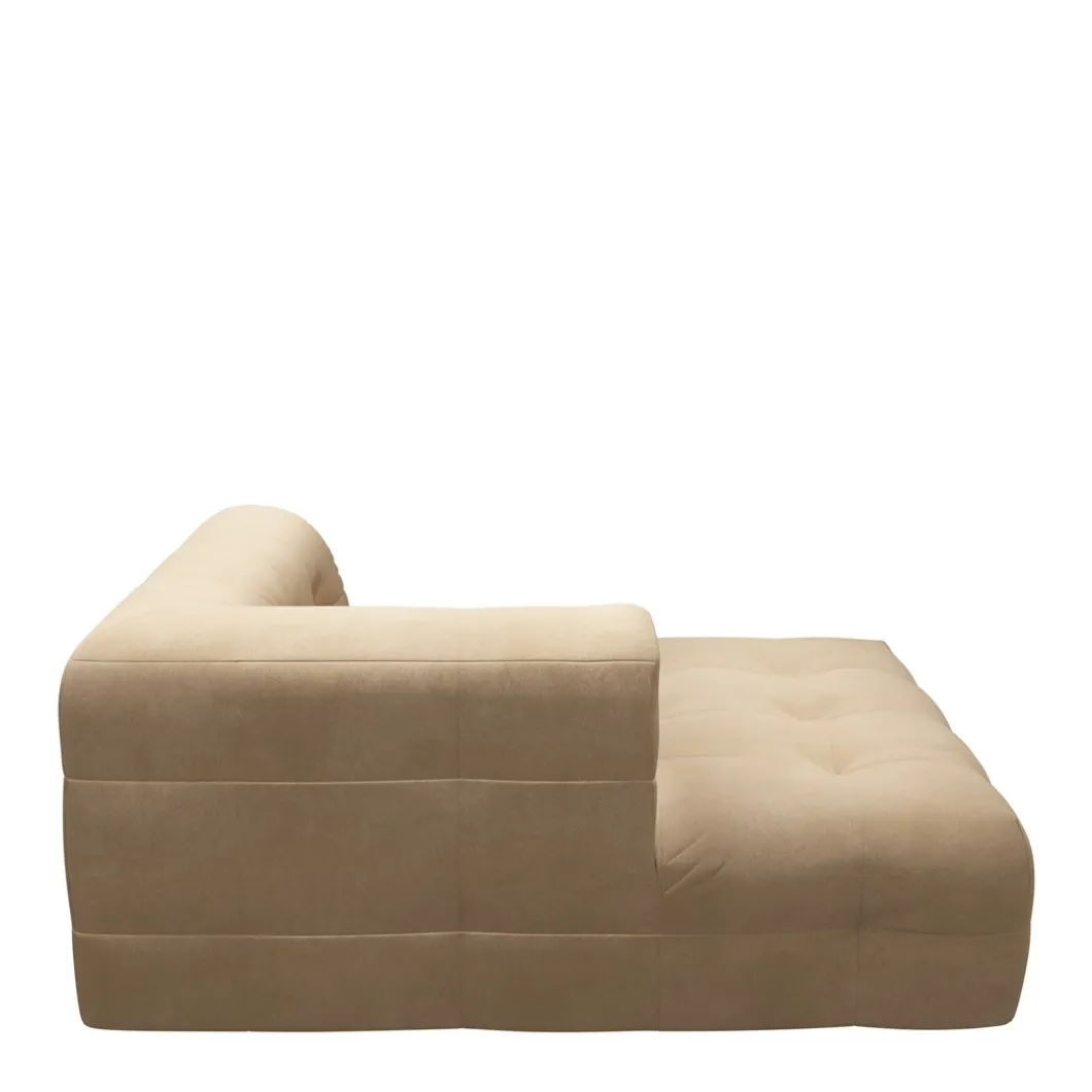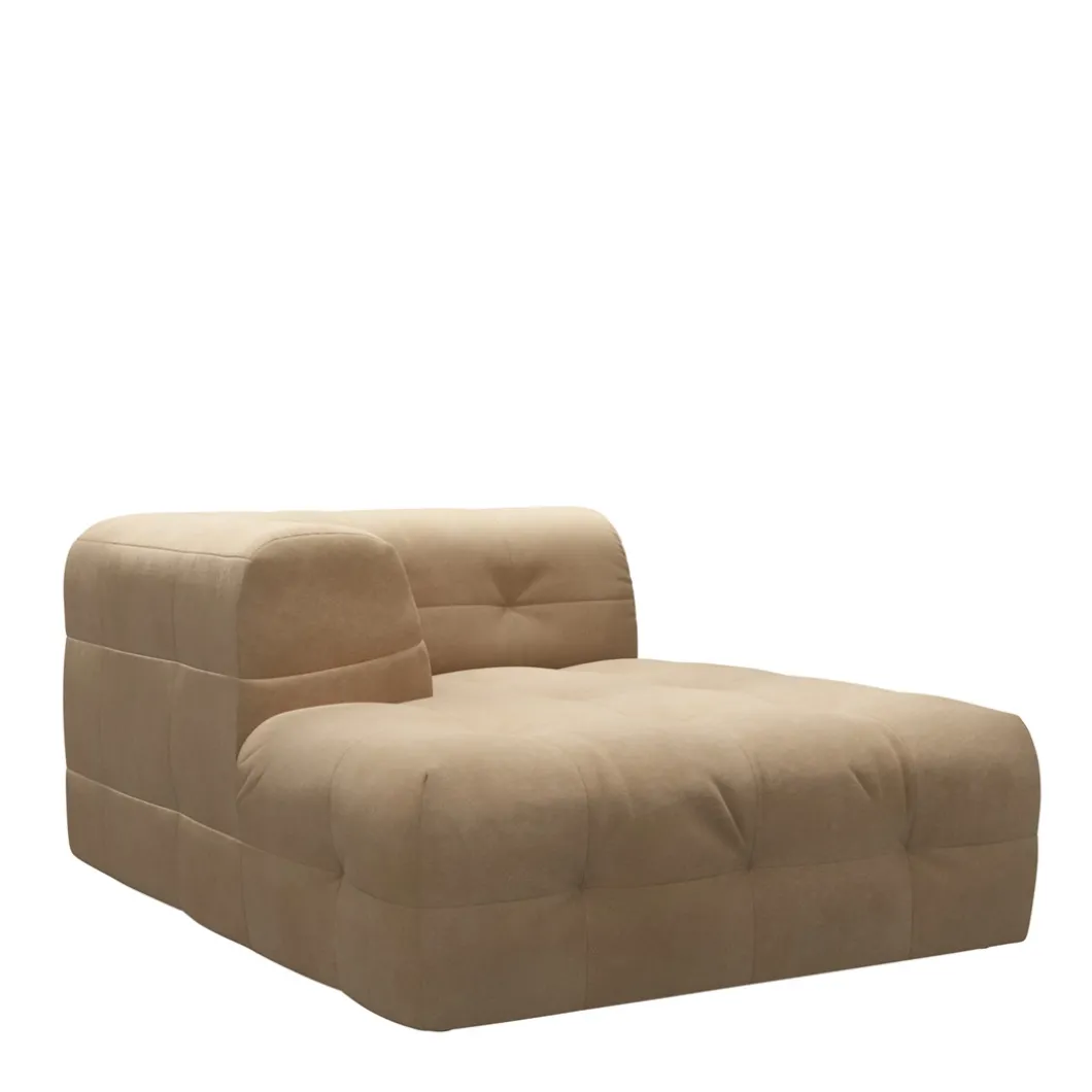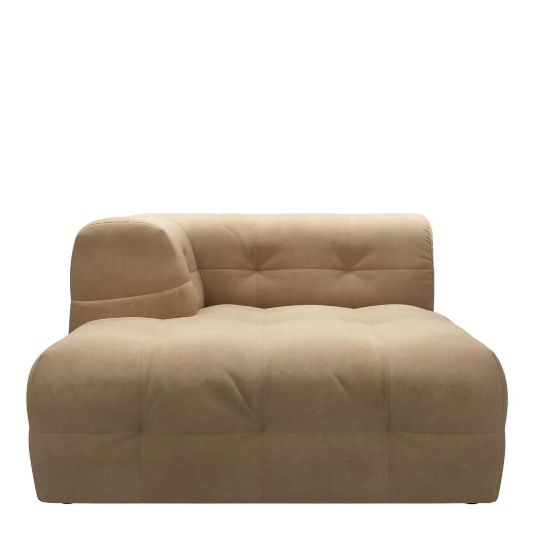 Lekker met de beentjes gestrekt, dat kan om dit chaise longue-deel links van The Jones modulaire bank. Dit linker chaise longue-element combineer je eenvoudig met de verschillende andere elementen uit deze serie, maar kun je natuurlijk los in de ruimte plaatsen. De bank heeft een bekleding die gecapitonneerd oogt, maar zonder de kenmerkende knoop, dit loopt door over alle zijden van de bank.