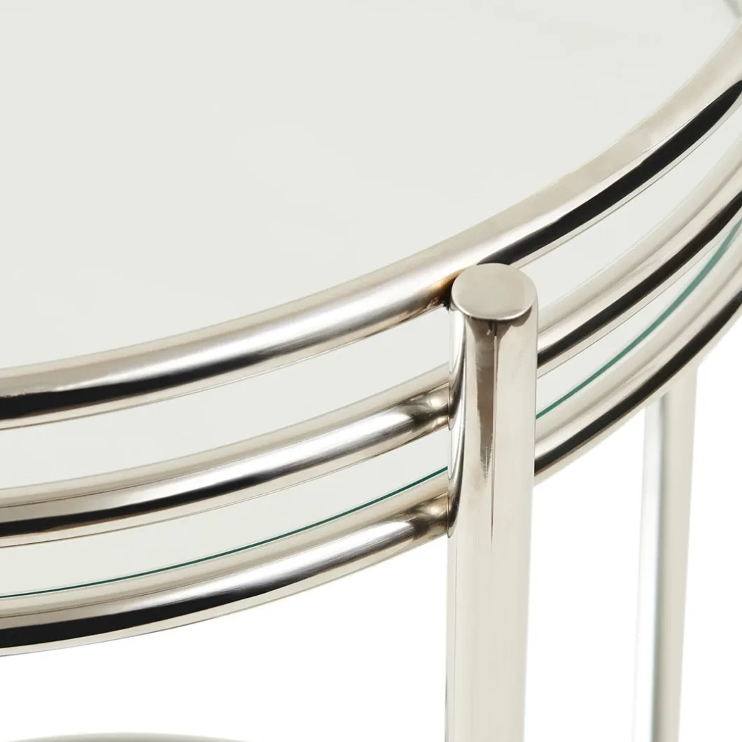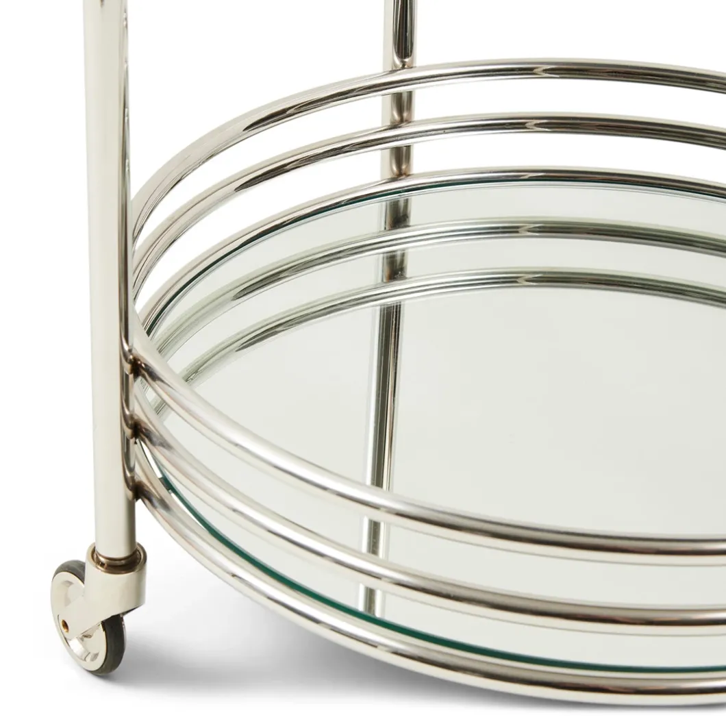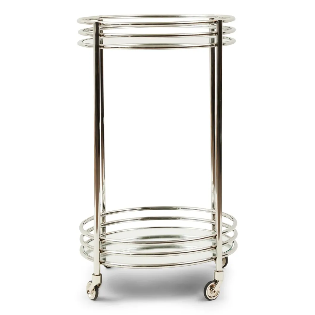 Een rijdende bar, dat is nog eens luxueus. Naar believen laat u hem staan waar hij staat, of u rolt hem naar waar u hem wilt hebben. Gemaakt van prachtig glanzend metaal straalt deze assistent u tegemoet. Brengt alles mee wat u maar nodig heeft, als u hem tevoren even laadt. Met zijn twee bladen biedt hij volop plaats.