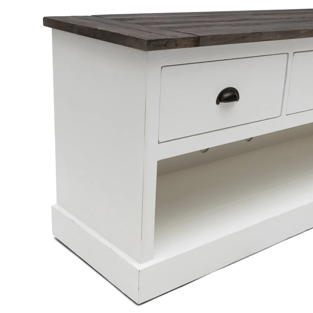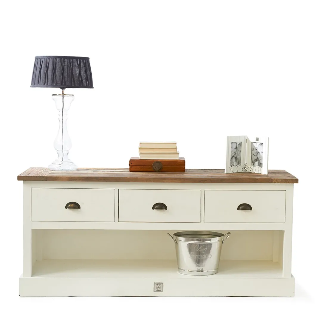 De Newport Flatscreen Dresser van wit populierenhout biedt veel bergruimte en heeft een vrij strak design. Het karakteristieke blad van driftwood brengt het dressoir helemaal tot leven. Ook verkrijgbaar in 180cm.