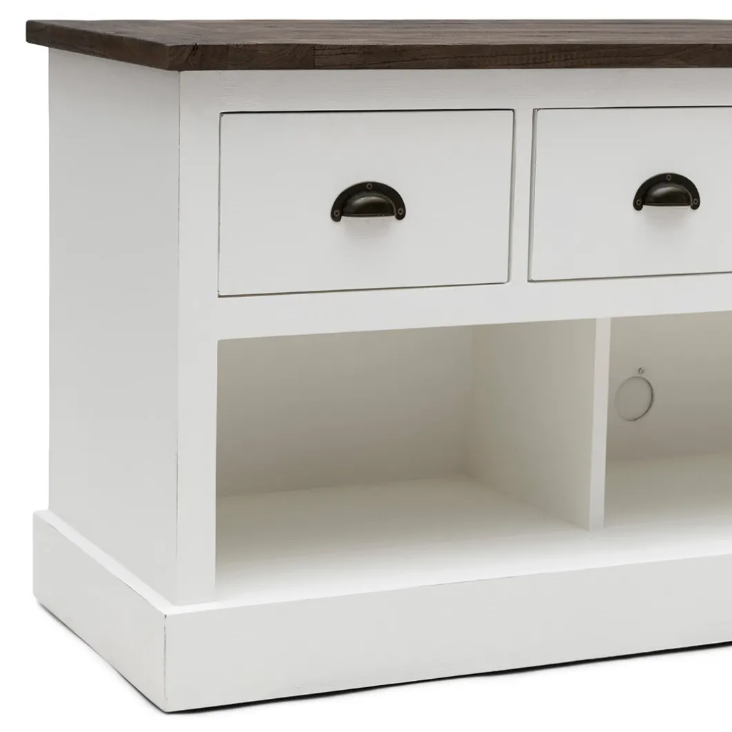 De Newport Flatscreen Dresser van wit populierenhout biedt veel bergruimte en heeft een vrij strak design. Het karakteristieke blad van oude schuurdeuren brengt het dressoir helemaal tot leven. Ook verkrijgbaar in 150cm.