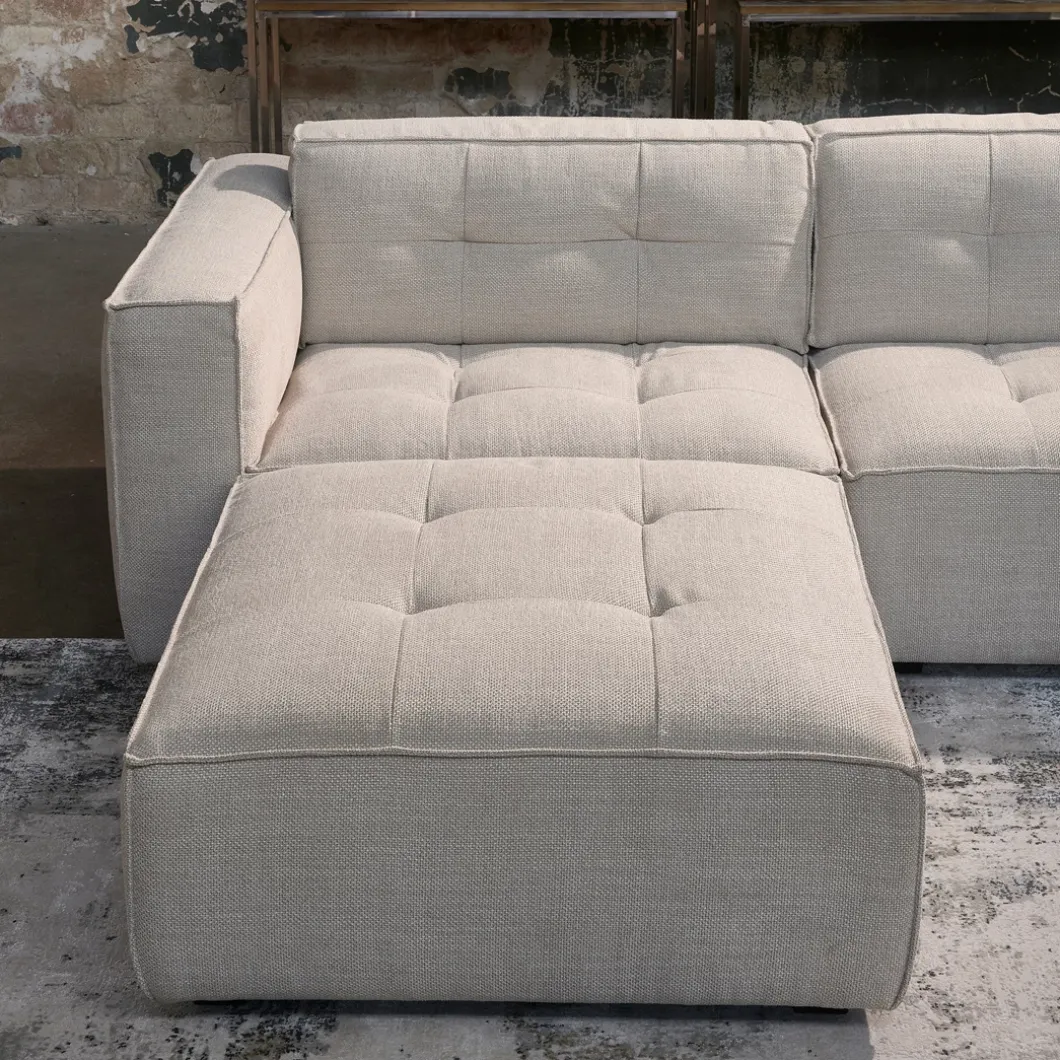 Dit is de footstool uit de serie Brandon, een bankenserie bestaande uit modulaire banken. Dit is de bijbehorende voetenbank die naadloos aansluit bij deze banken met opvallend tufting detail. Met een voetenbank als deze maak je in een handomdraai een lounger van je bank. Verkrijgbaar in verschillende stoffen en kleuren.