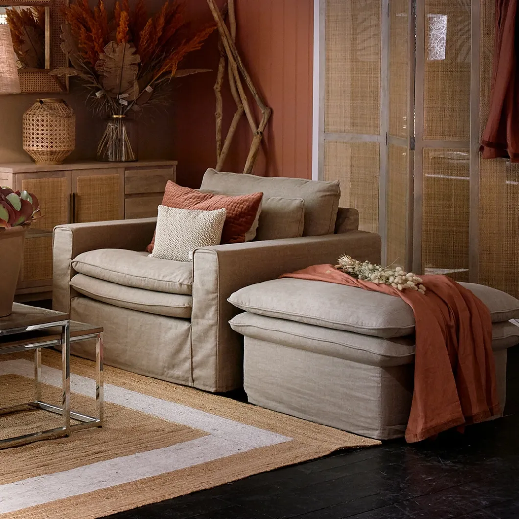 De Continental Footstool is een onmisbare grote poef voor bij de Continental zitbanken of loveseats. U schuift de bijpassende voetenbank of bijzettafel eenvoudig aan. De Footstool is 105 x 90 centimeter groot. De unieke, handgemaakte meubels in verschillende modellen met dezelfde kleur en stof kunnen nuance- of kleurverschillen hebben