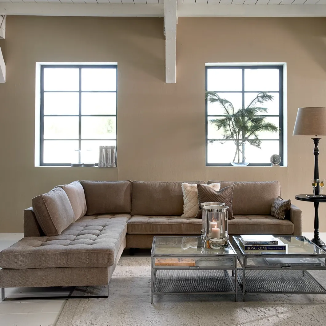 Deze luxe hoekbank met gecapitoneerde Chaise Longue en metalen onderstel heeft een strakke, frisse en moderne uitstraling. Een echte eyecatcher in uw interieur die ook nog eens ontzettend lekker zit. Verkrijgbaar in verschillende uitvoeringen en kleuren.